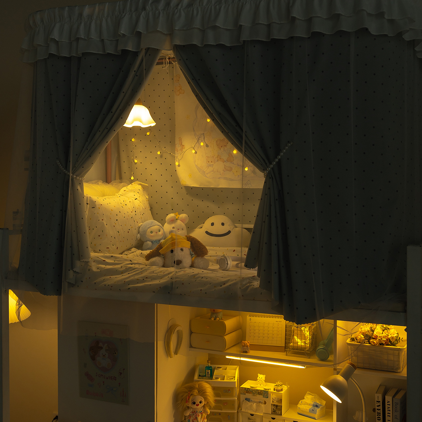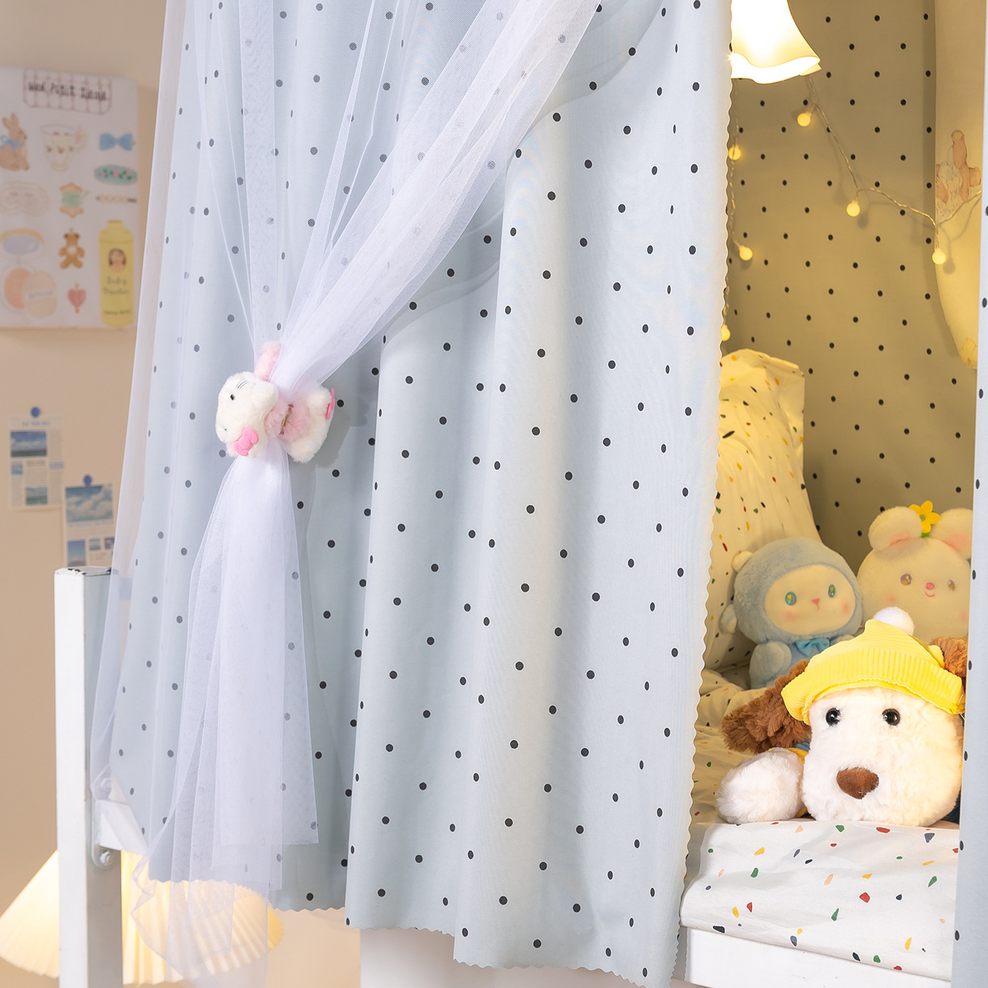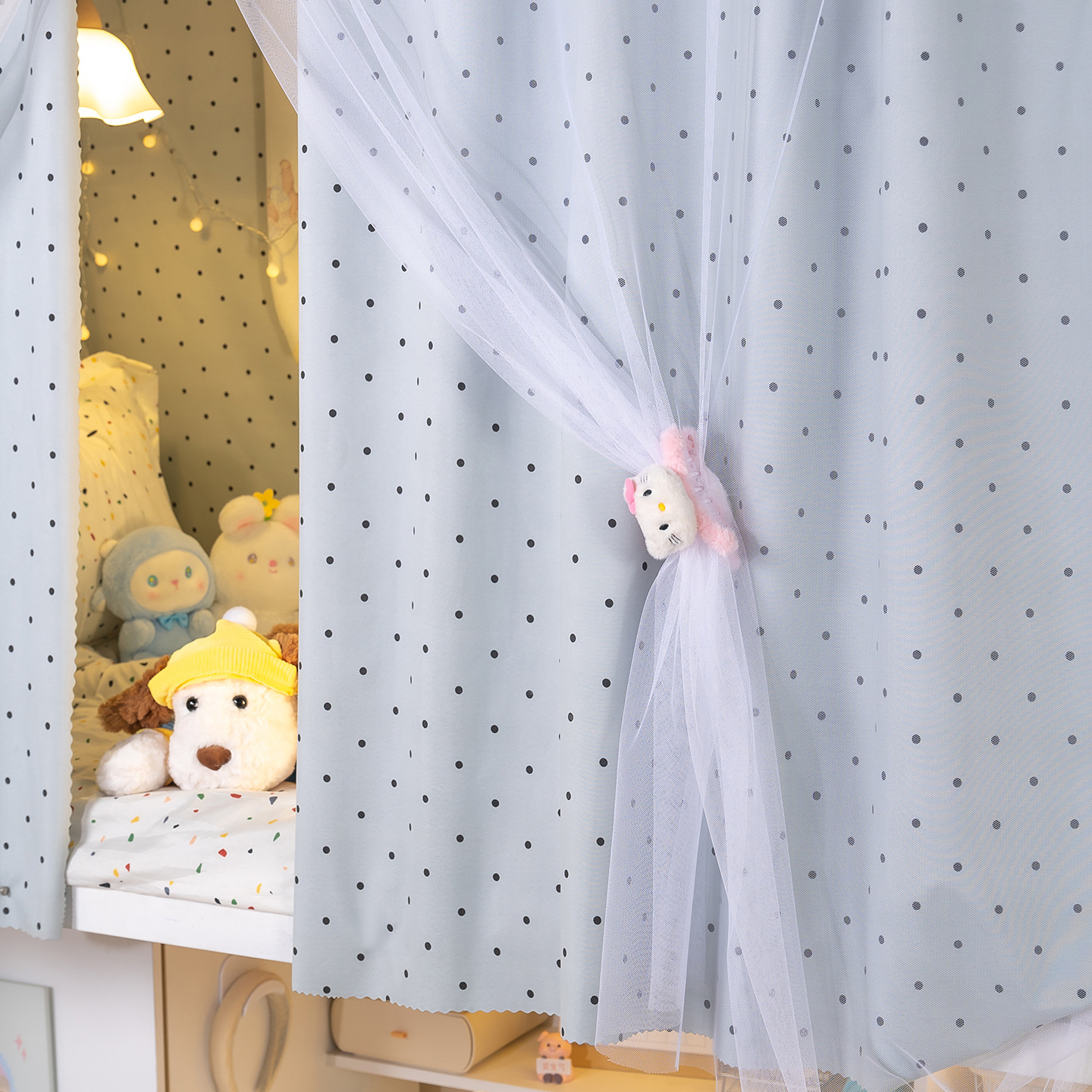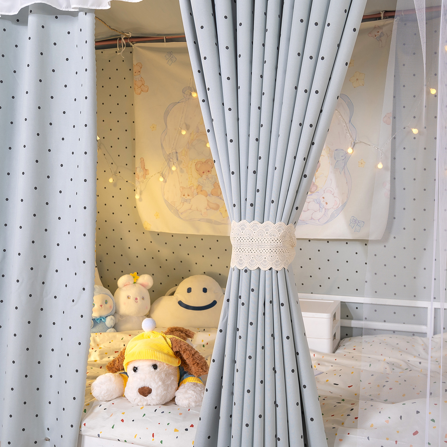 • 하부 침대 바다 소금 물방울 무늬 - 커튼 3개 + 일반 실 3개 + 벨크로 커튼 헤드