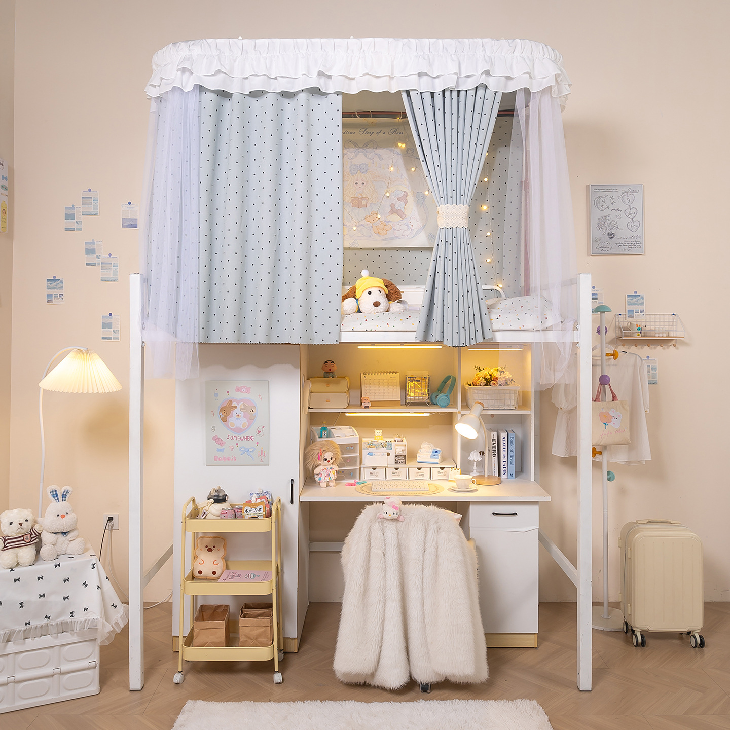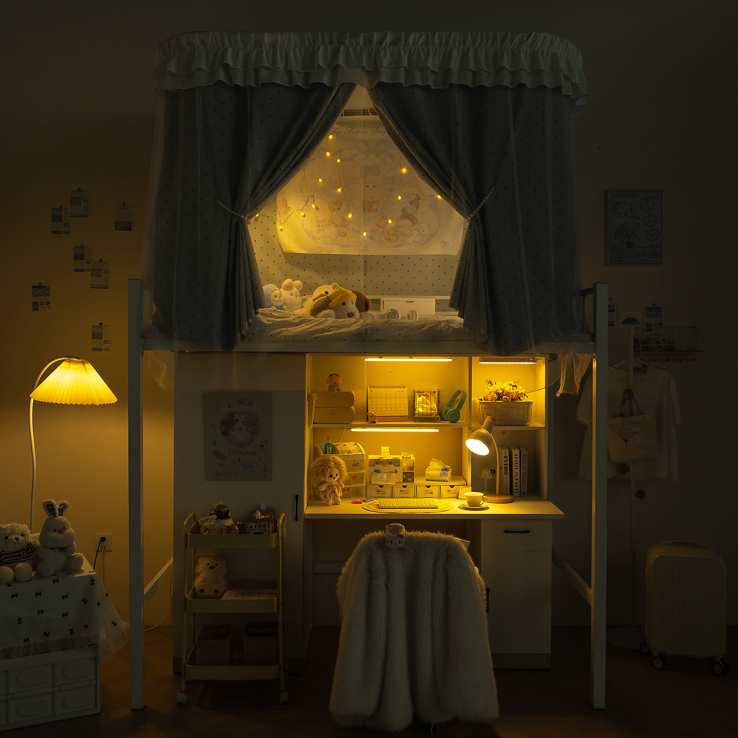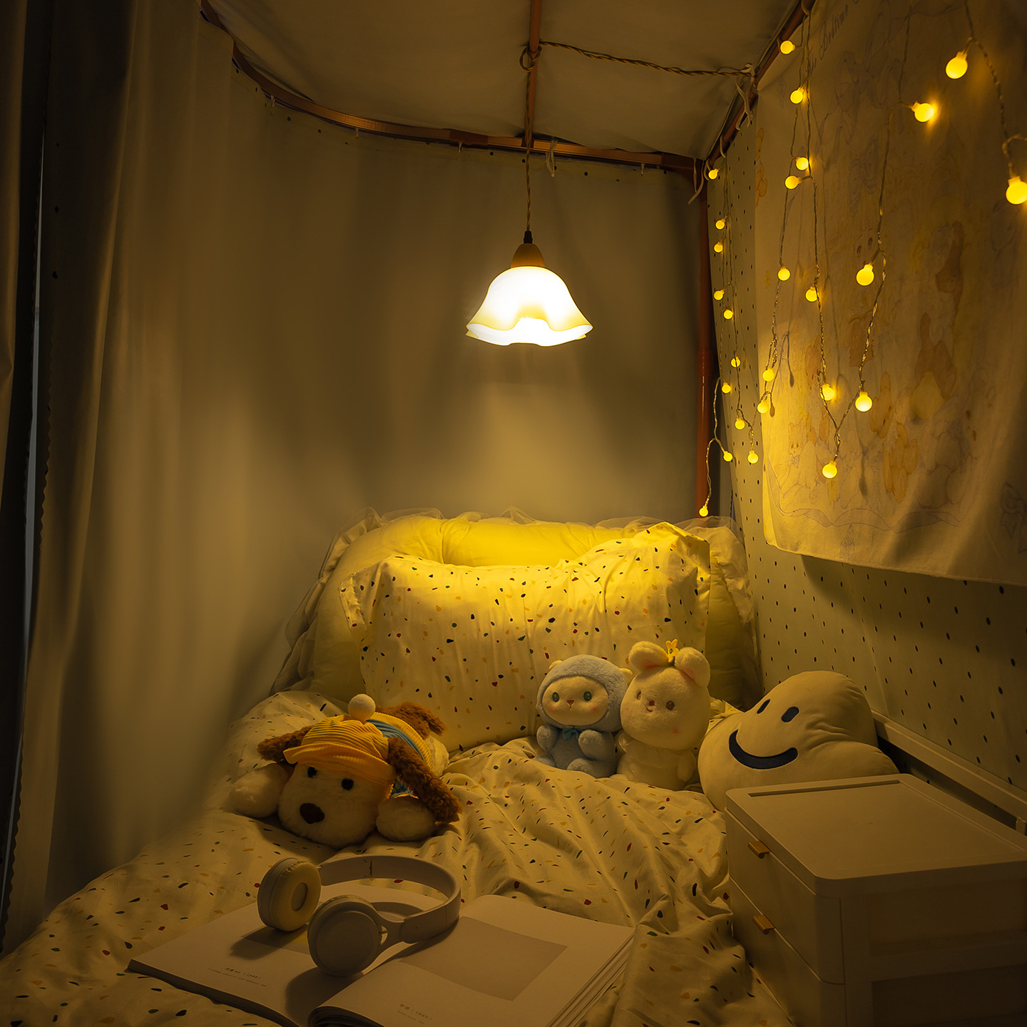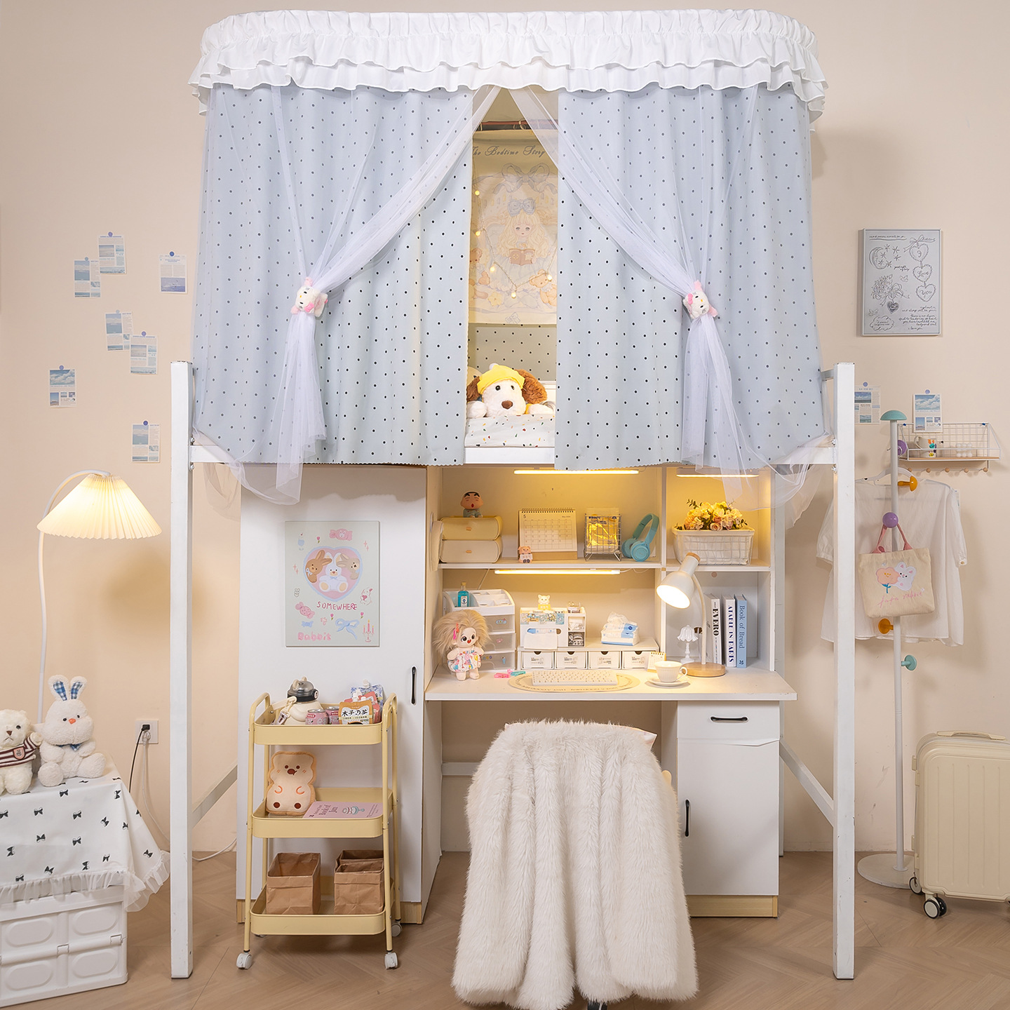 • 하부 침대 바다 소금 물방울 무늬 - 커튼 3개 + 일반 실 3개 + 벨크로 커튼 헤드