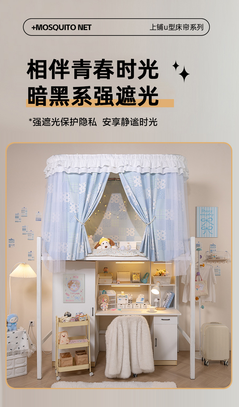 대학생 기숙사 차광 침대 커튼 모기장 일체형 2025 신형 사계절 범용 상단 침대 개인 정보 보호 커튼스토어 가기