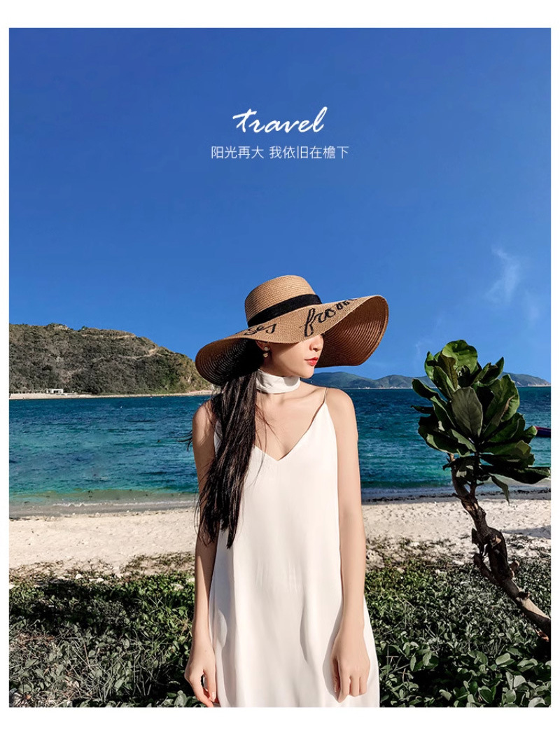 여성용 밀짚모자, 야외 자외선 차단, 해변 모자, 해변 한국식 대형 챙, 휴가 및 여행, 인터넷 연예인 다용도 태양 모자스토어 가기