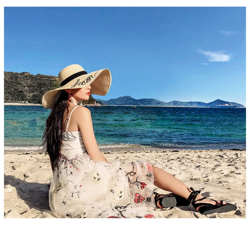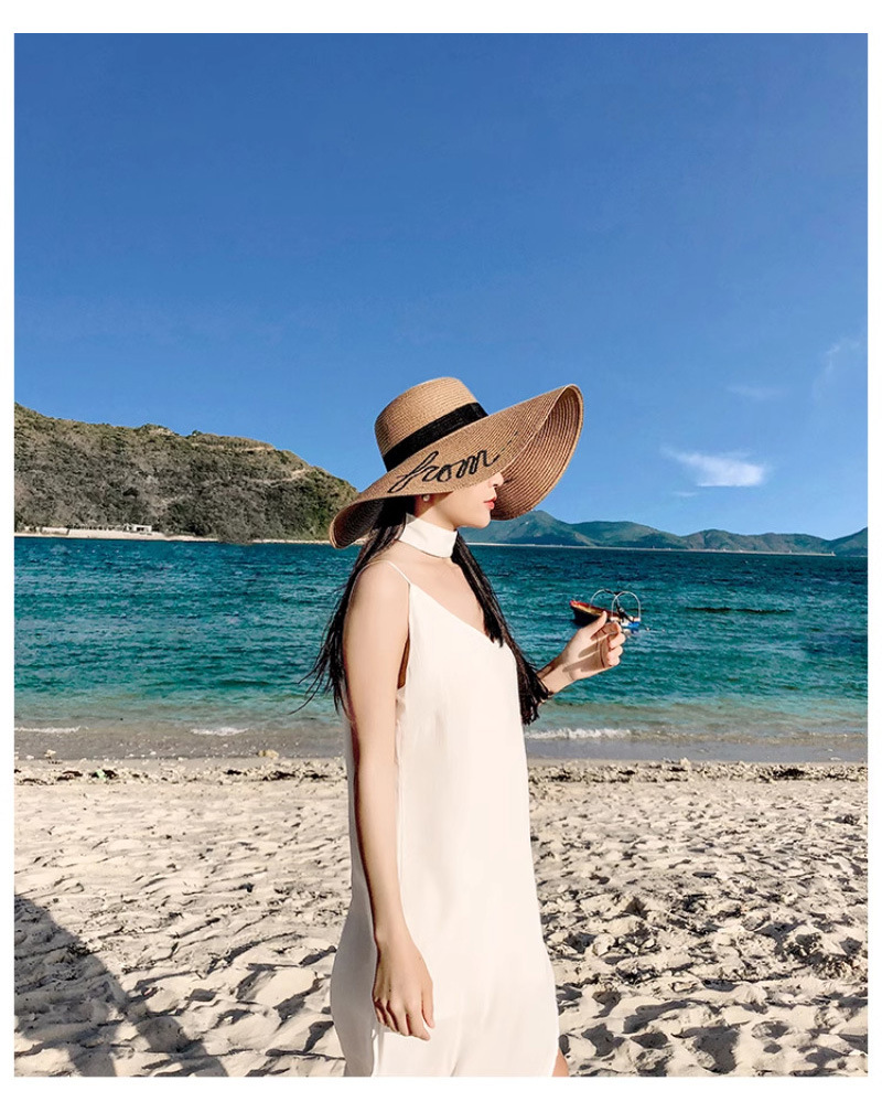 여성용 밀짚모자, 야외 자외선 차단, 해변 모자, 해변 한국식 대형 챙, 휴가 및 여행, 인터넷 연예인 다용도 태양 모자