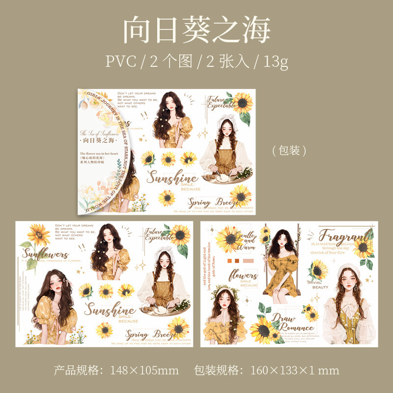 그녀의 마음속 꽃바다 시리즈 토마토소스 소녀 전사 스티커 캐릭터 테마 수첩 소재 2장 6종