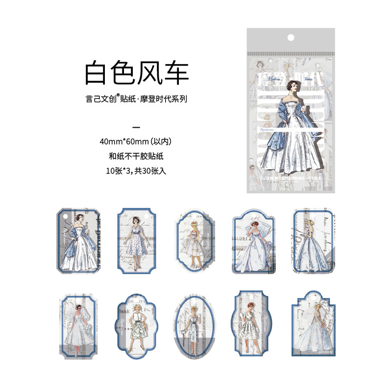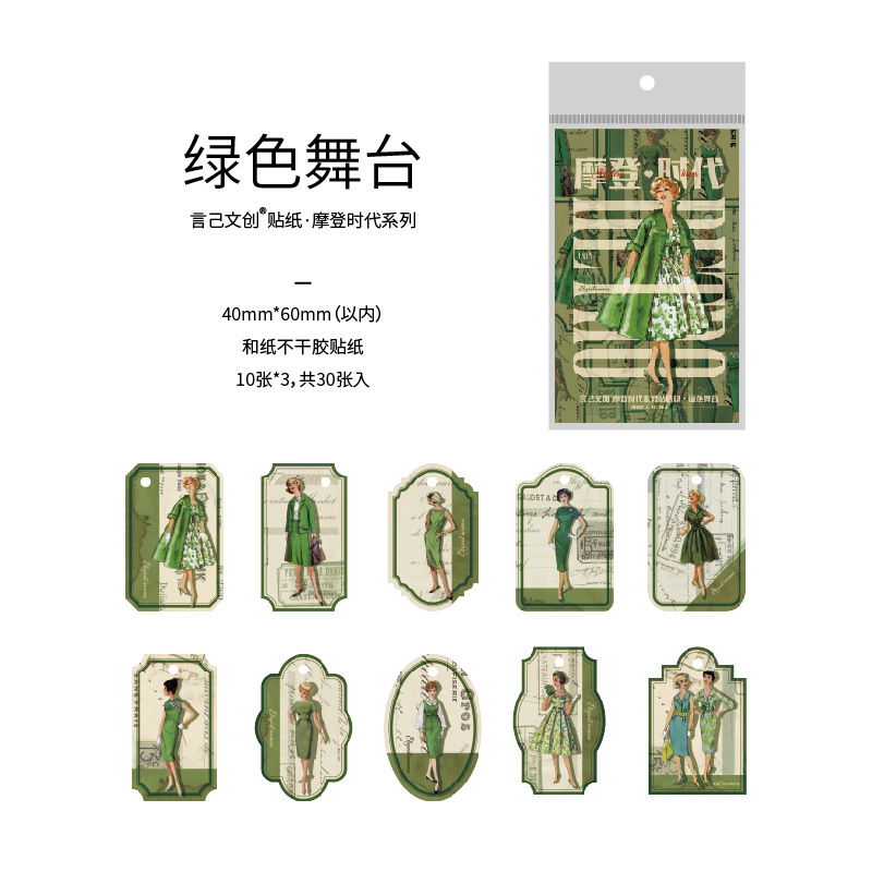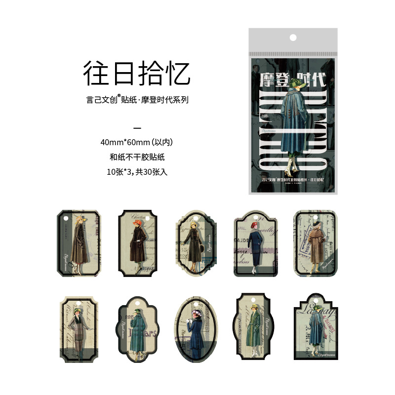 Yanji Modern Era 시리즈 스티커 팩 향수 복고풍 캐릭터 핸드북 DIY 재료 스티커 30장 8가지 스타일스토어 가기