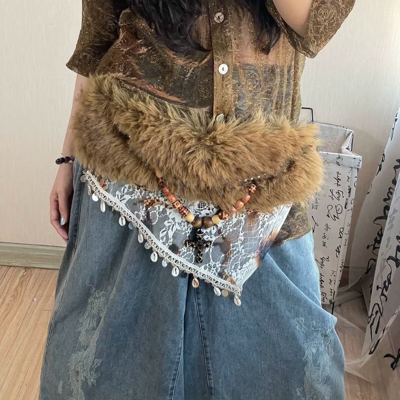 오리지널 플러시 벨트 Y2k 하위 문화 복고풍 다목적 플러시 허리 체인 허리띠 핫 소녀 섹시한 허리 액세서리