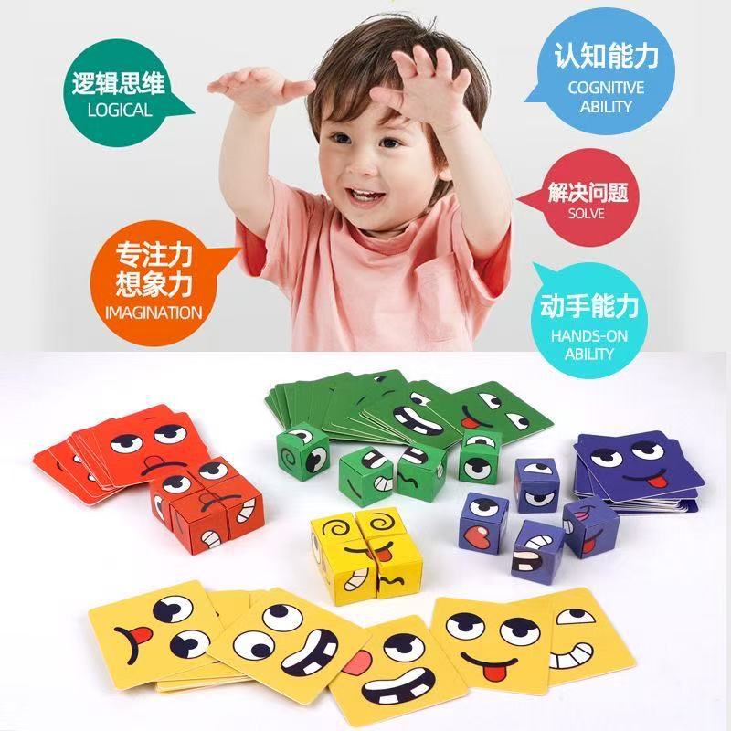 얼굴이 변하는 루빅스 큐브 어린이 조기 교육 교육 장난감 부모-자식 대화형 재미있는 탁상용 게임 웃는 표정 빌딩 블록 부모-자식스토어 가기