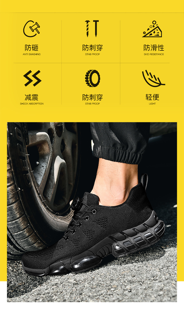 남성용 국경 간 파손 방지 및 펑크 방지 노동 보호 신발, 내마모성, 미끄럼 방지, 경량, 통기성 강철 발가락 작업 안전 보호 신발