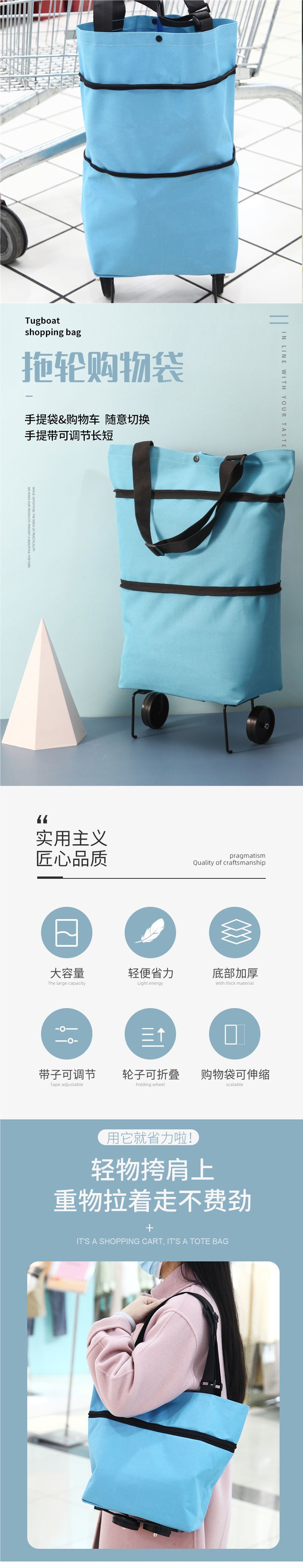 식료품 쇼핑 카트, 휴대용 접이식 트레일러 쇼핑백, 바퀴가 달린 슈퍼마켓 핸드백, 텔레스코픽 이중 목적 가방, 소형 트롤리