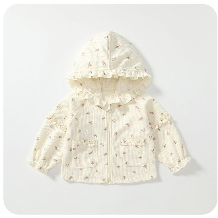 봄 신상 여아 코트, 여아용 세련된 꽃무늬 외출복, 1~3세 아동용 후드 가디건 상의 코트