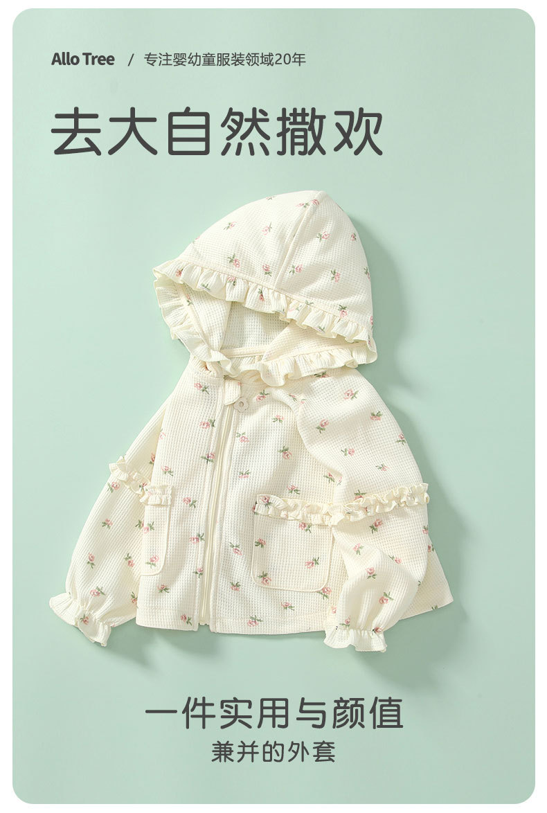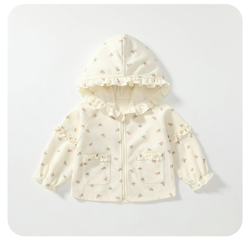 봄 신상 여아 코트, 여아용 세련된 꽃무늬 외출복, 1~3세 아동용 후드 가디건 상의 코트스토어 가기