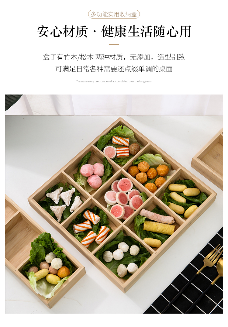 나무 냄비 보석 보관 상자 사각형 가정용 보관 상자 저녁 식사 접시 일본식 나무 상자 Jiugongge Shouhengfang스토어 가기