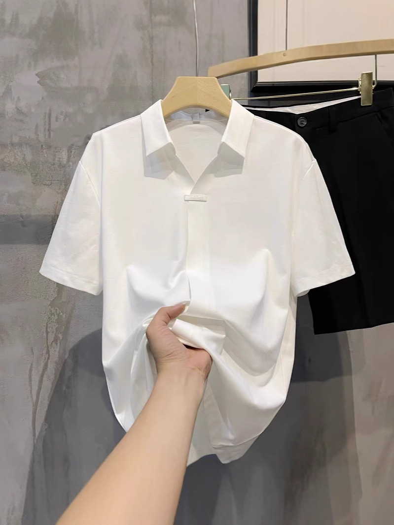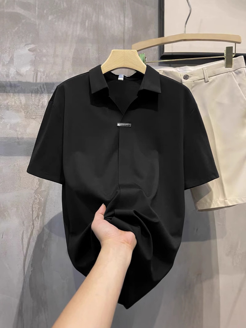 여름철 남성용 블랙 반팔 셔츠, 주름 방지, 노아이언, 핸섬 남성 비즈니스 캐주얼 남성용 화이트 셔츠스토어 가기