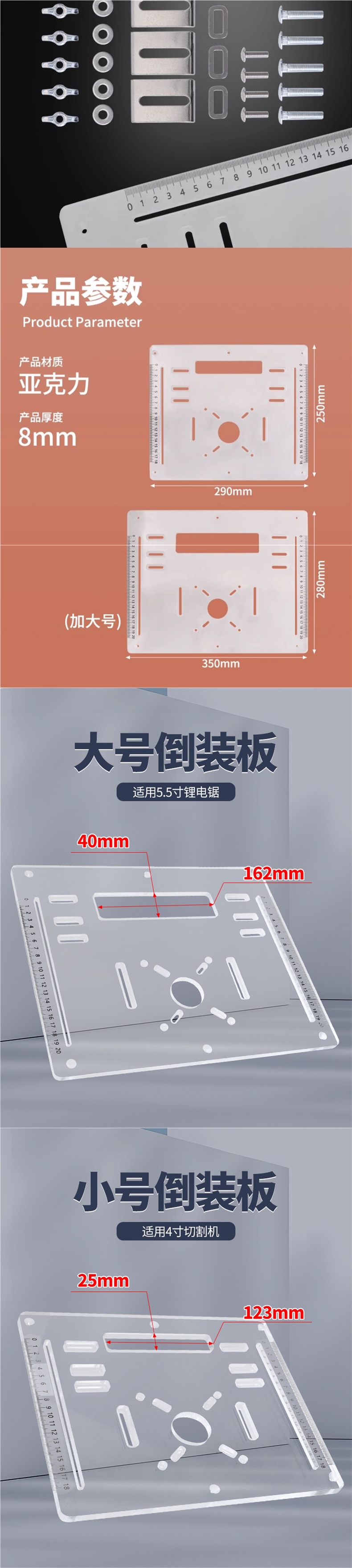 • 아크릴 다기능 플립업 베이스 플레이트 [대형] [직경 162 이내의 톱날에 적용 가능]