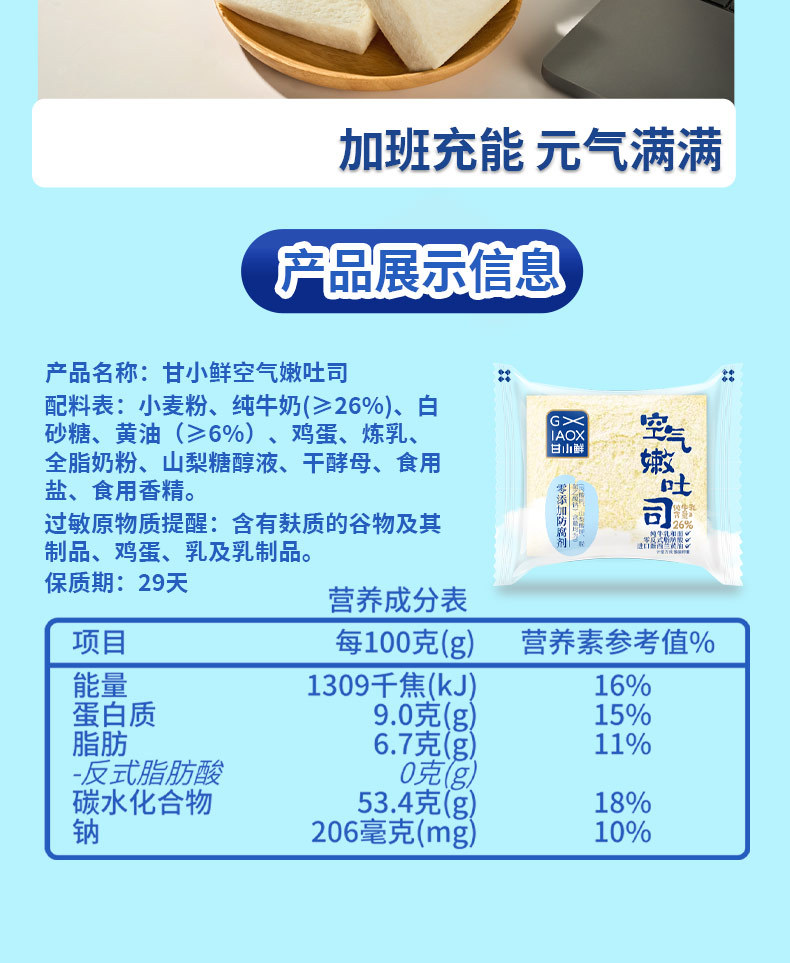 방부제가 첨가되지 않은 간샤오시안 에어 텐더 토스트, 학생들을 위한 두껍게 썬 밀크 토스트 빵 슬라이스