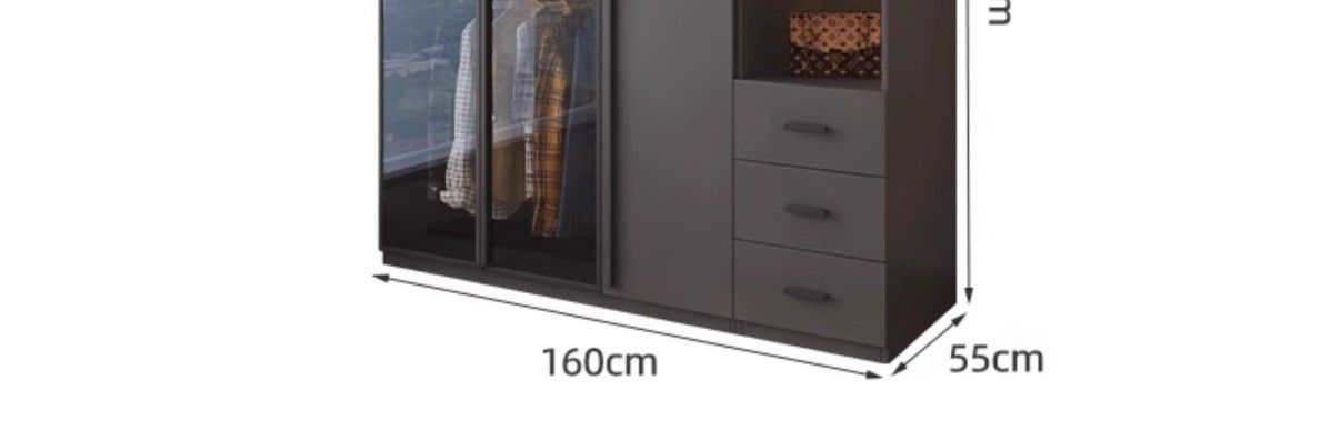 • ★ ☆ 3도어 옷장 + 사이드 캐비닛 [전체 길이 1.6m ] ★ ☆