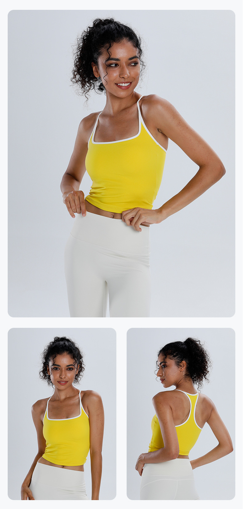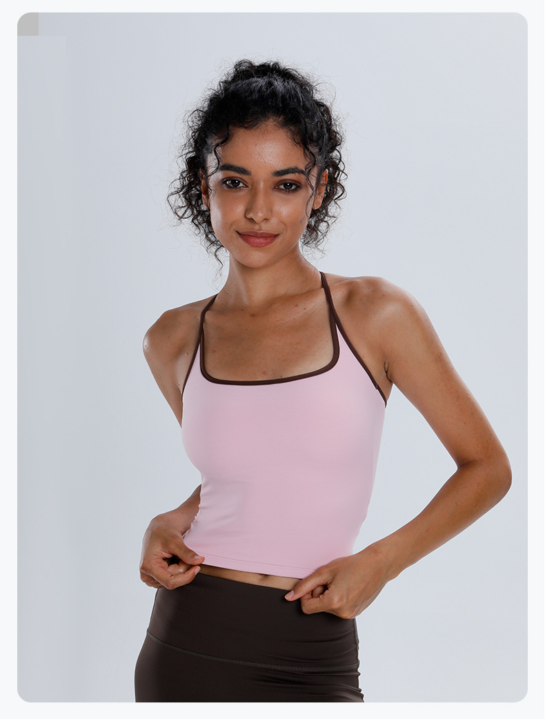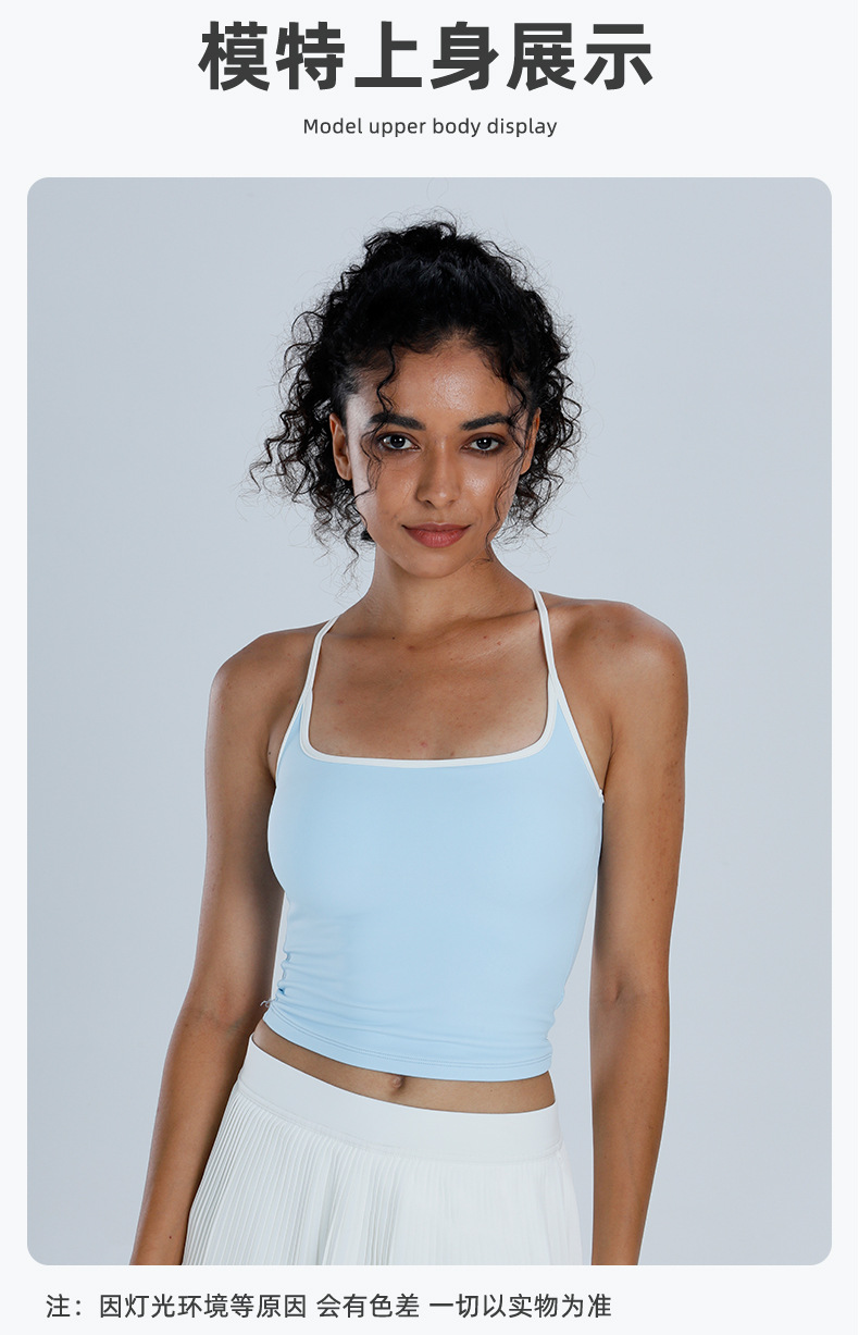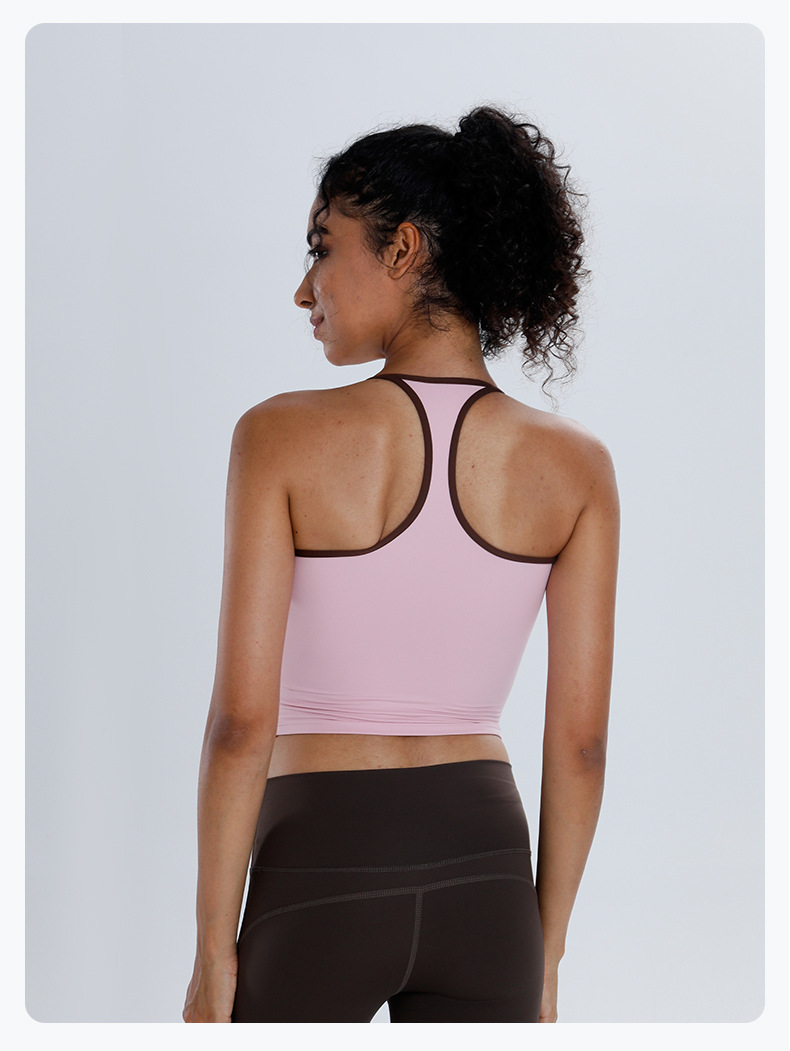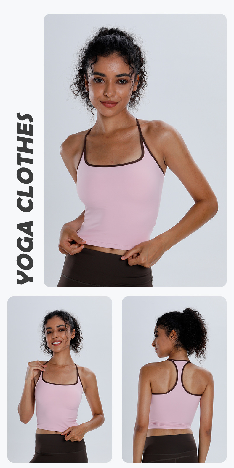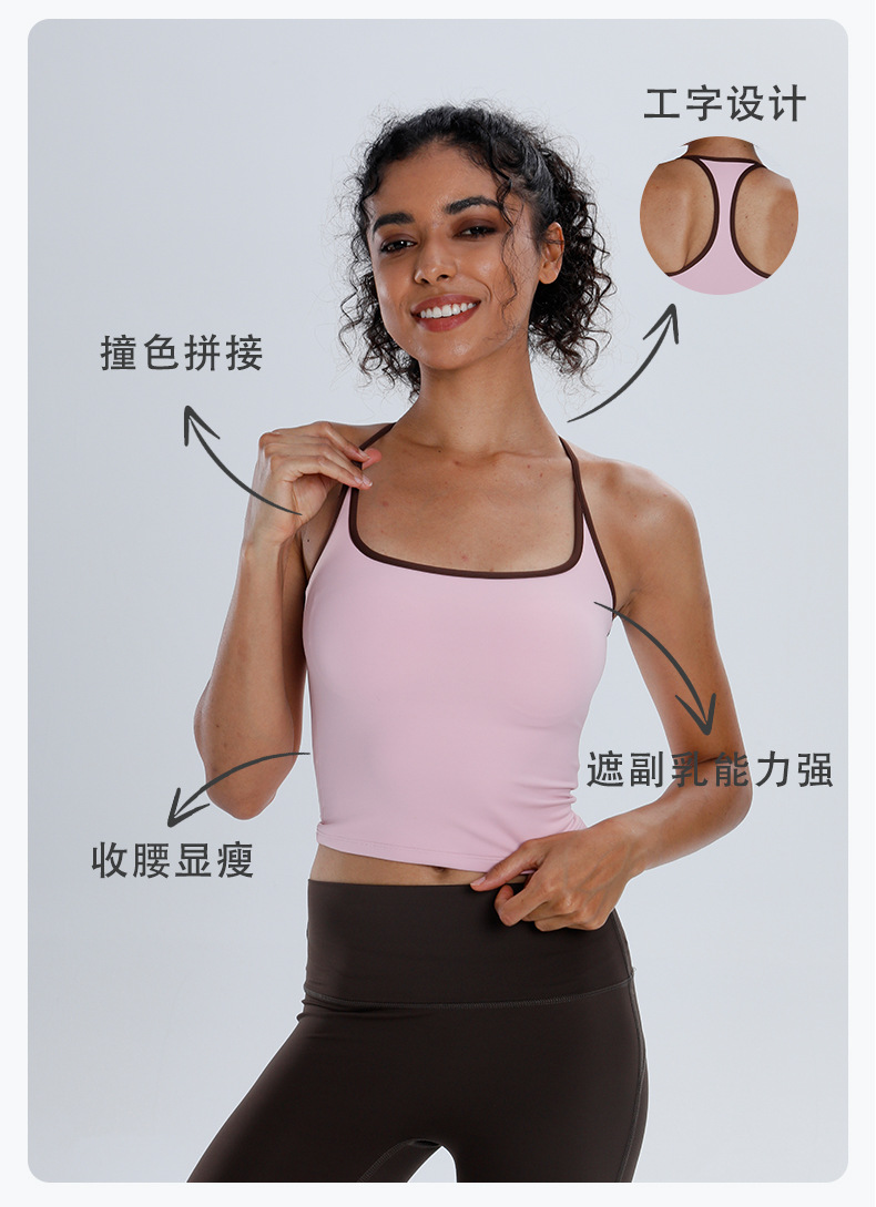 여성용 I자형 아름다운 등 스포츠 브라, 충격 방지, 피부 친화적인, 누드 느낌, 대비 색상 요가 조끼, 여성용 필라테스 피트니스 브라스토어 가기