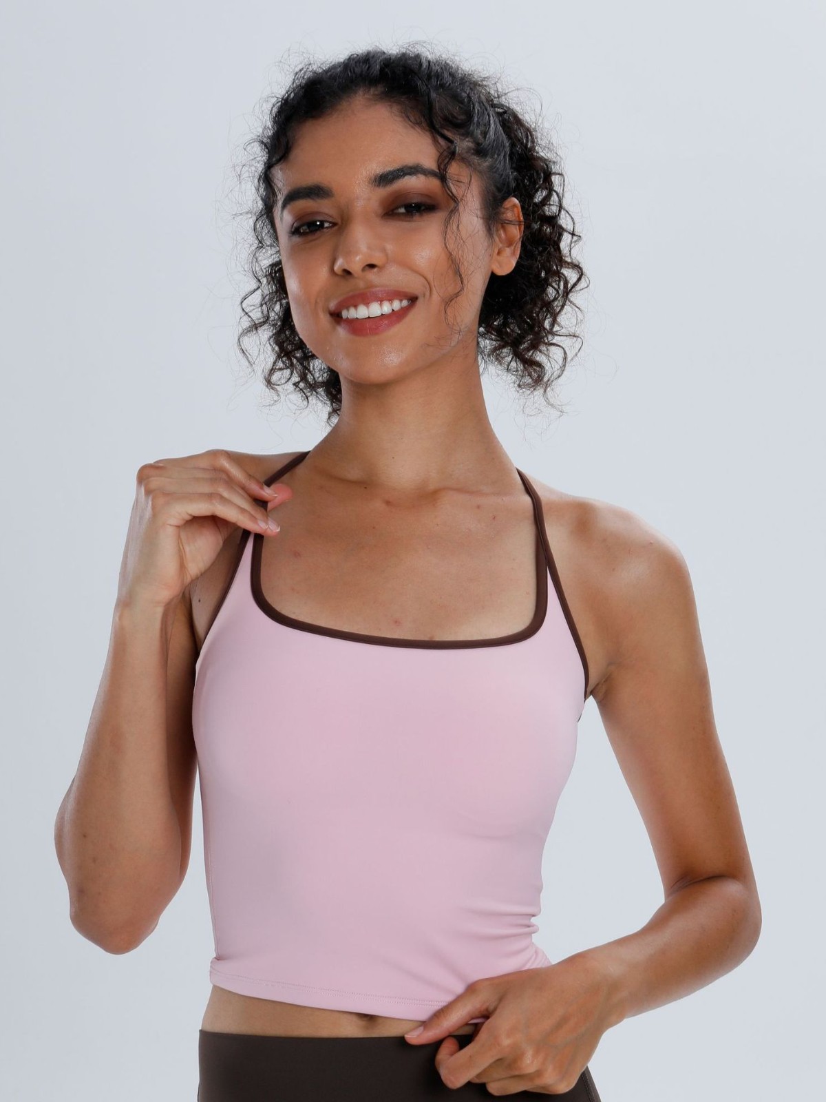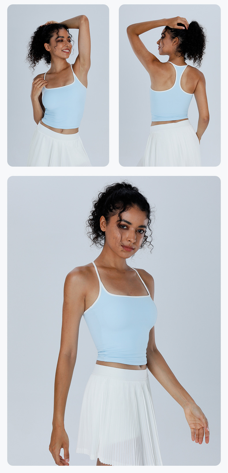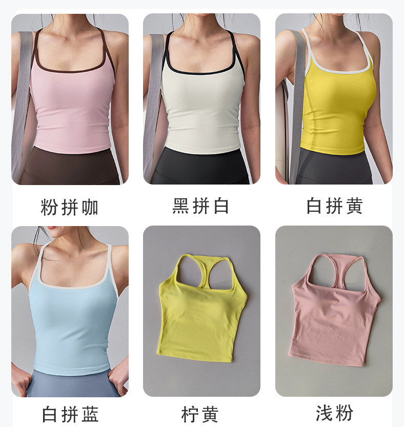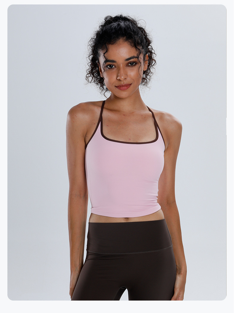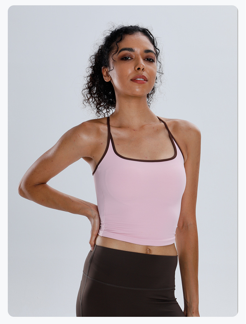 여성용 I자형 아름다운 등 스포츠 브라, 충격 방지, 피부 친화적인, 누드 느낌, 대비 색상 요가 조끼, 여성용 필라테스 피트니스 브라스토어 가기