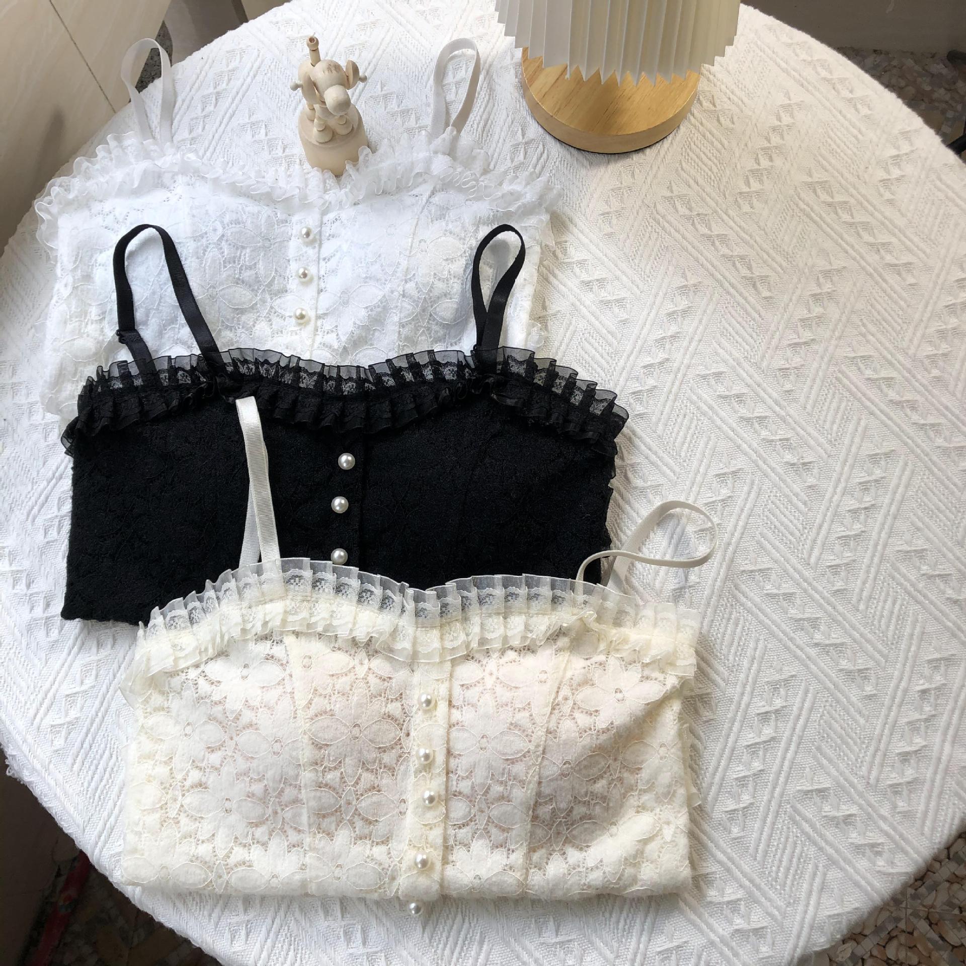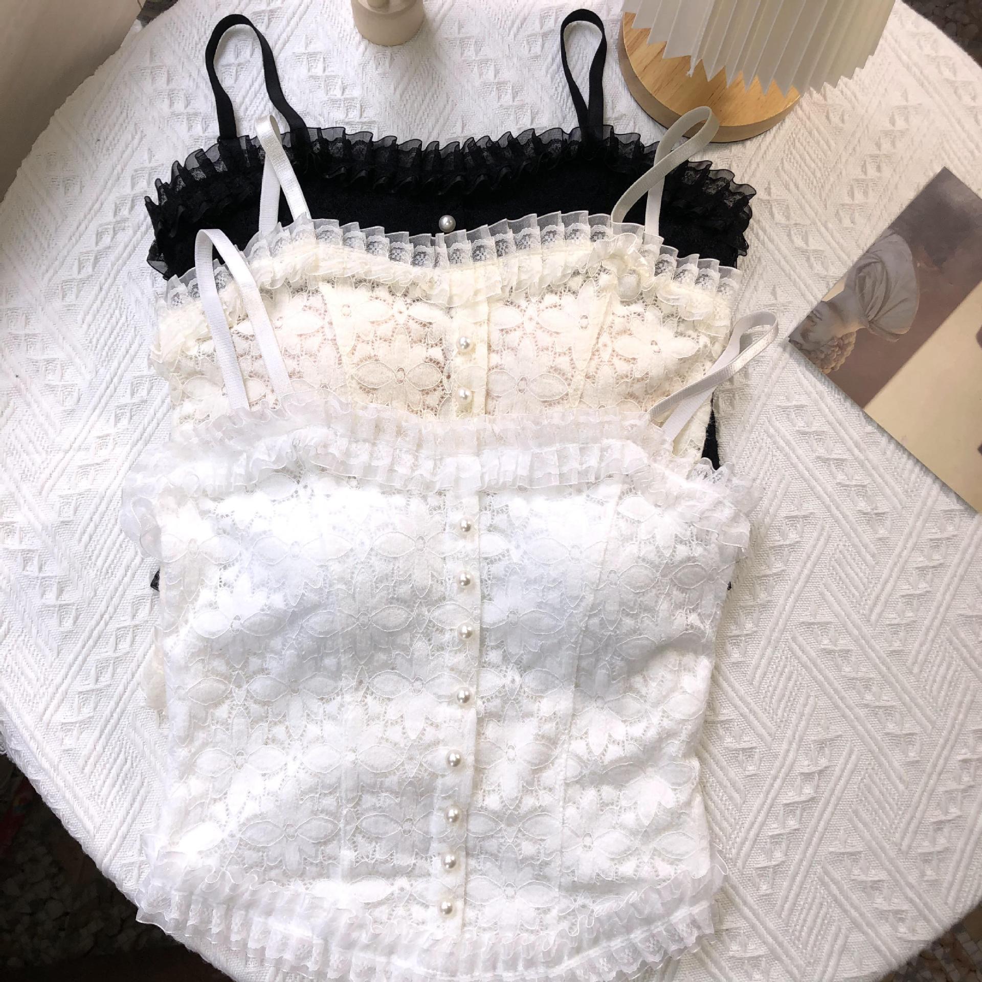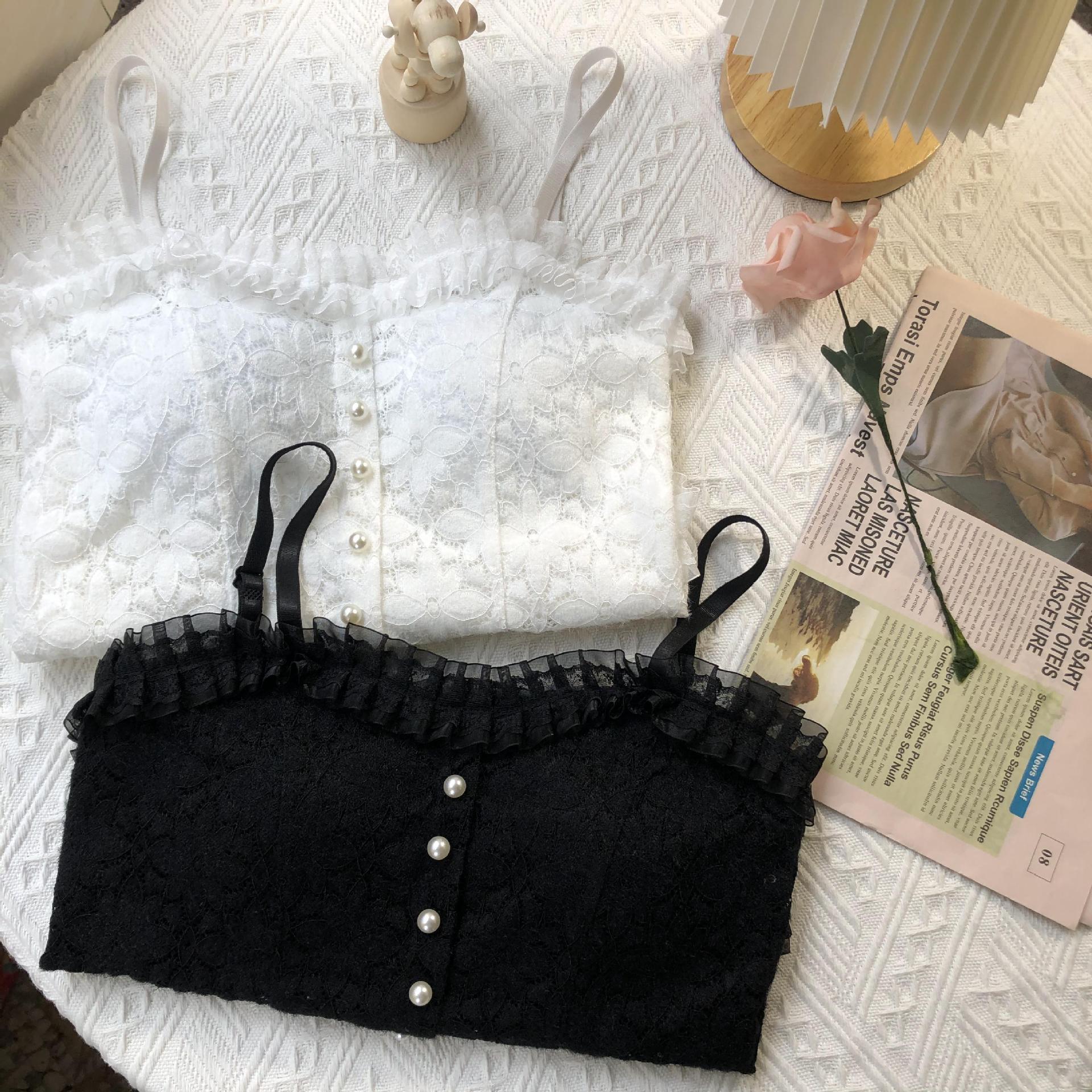 국경 간 대외 무역 인기 순수 레이스 서스펜더 얇은 가슴 패드 다용도 내부 가방 외부 착용 진주 조끼 여름스토어 가기