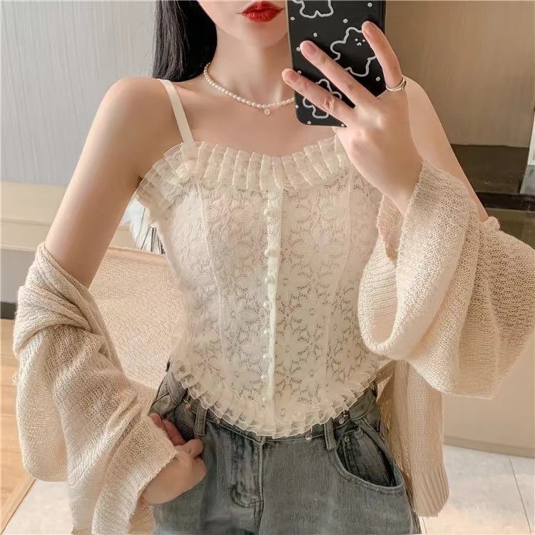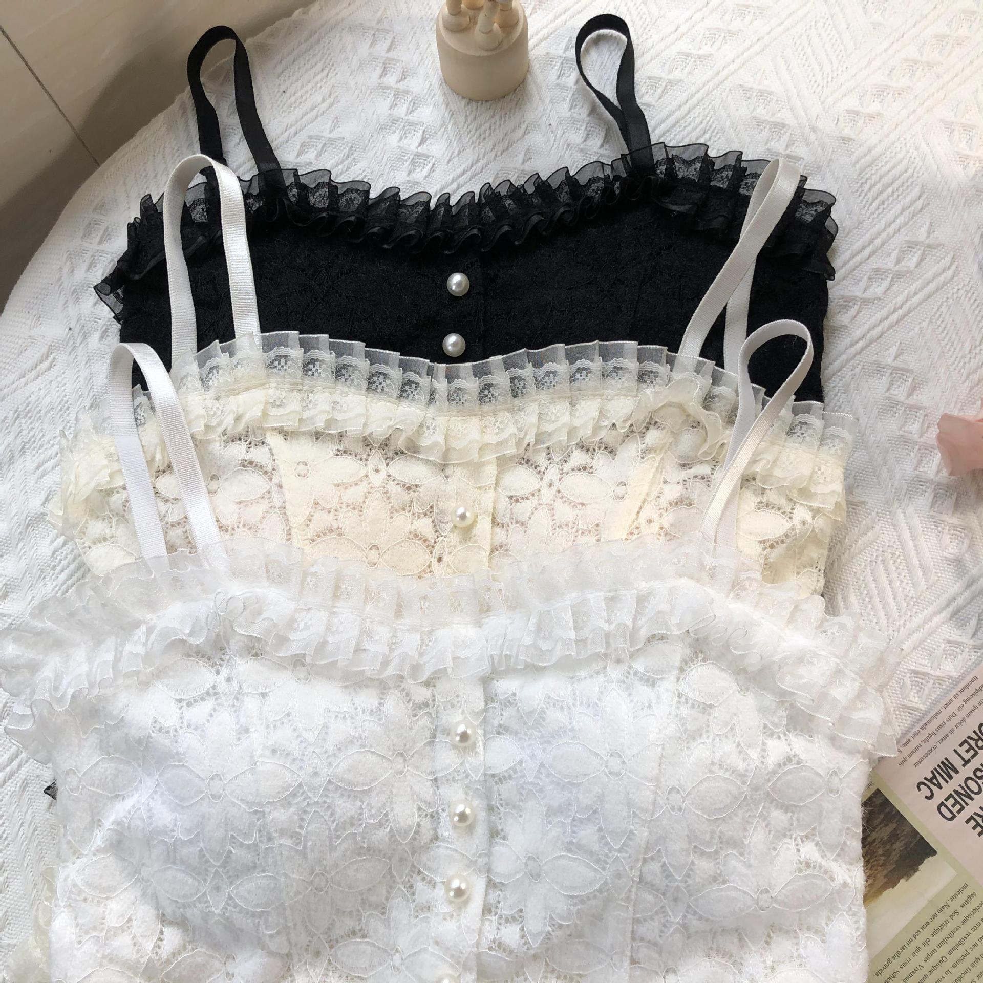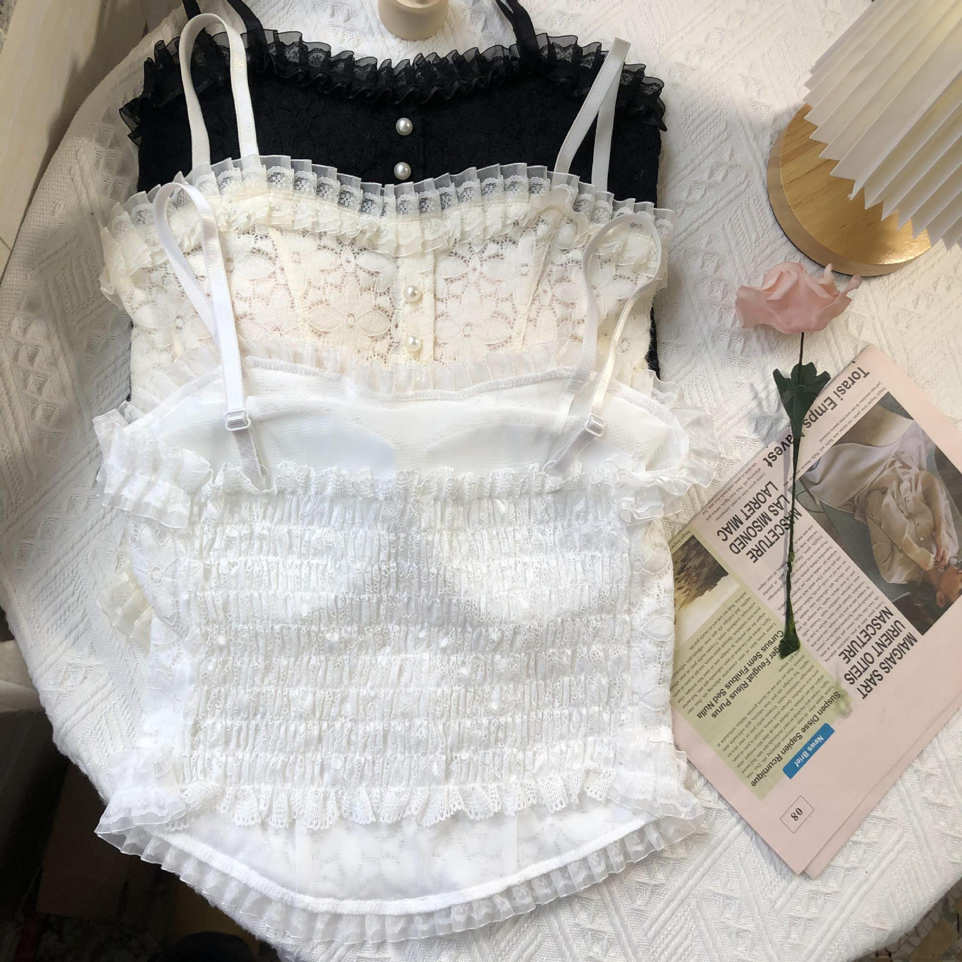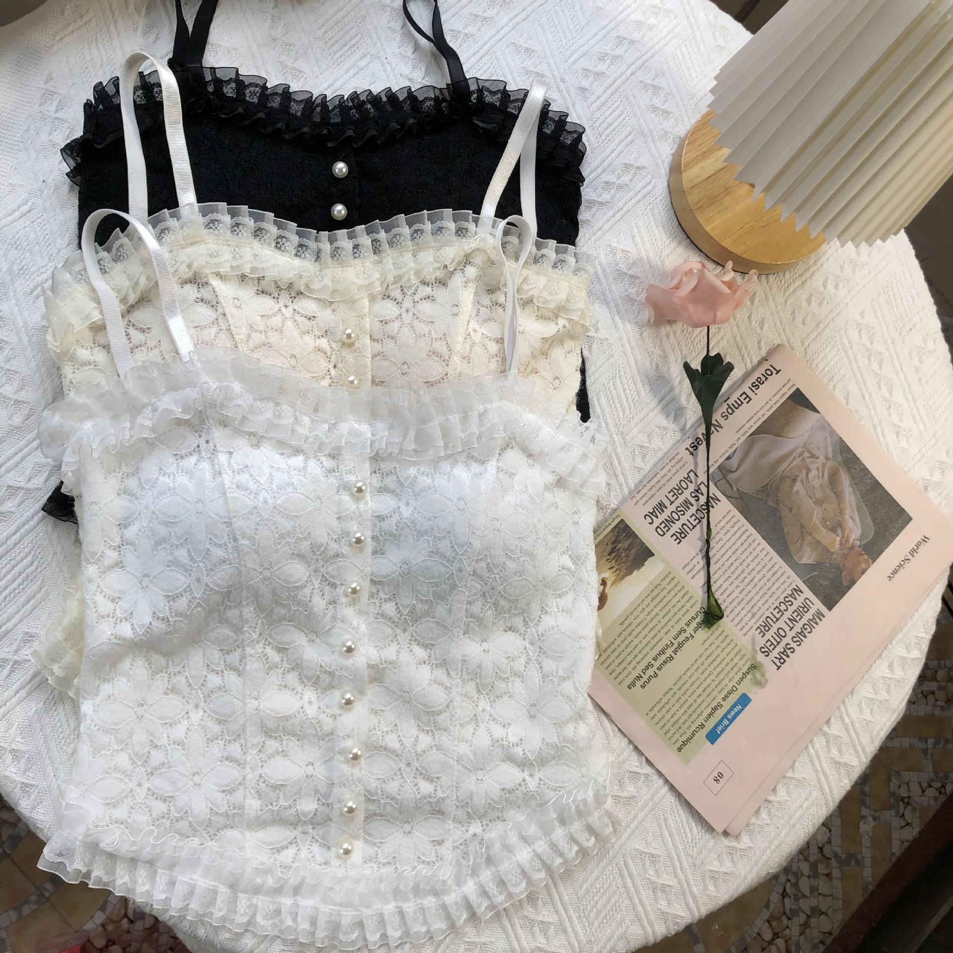 국경 간 대외 무역 인기 순수 레이스 서스펜더 얇은 가슴 패드 다용도 내부 가방 외부 착용 진주 조끼 여름스토어 가기