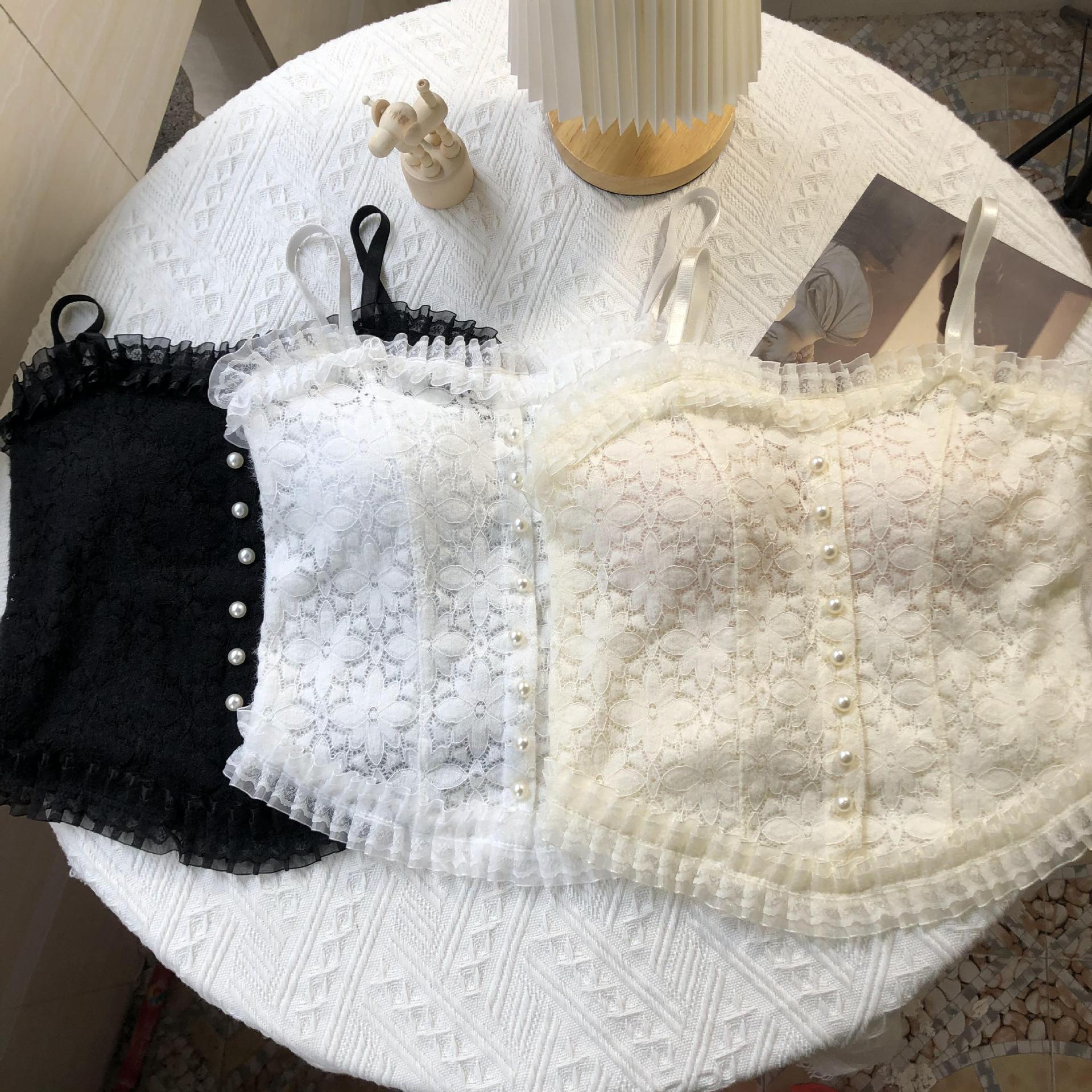 국경 간 대외 무역 인기 순수 레이스 서스펜더 얇은 가슴 패드 다용도 내부 가방 외부 착용 진주 조끼 여름