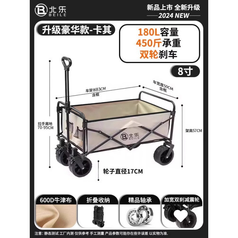 • 8inch 럭셔리 모델 - 카키 + 오프화이트 테이블 (직경 17cm 충격 흡수 휠/노동 절약/더블 브레이크)