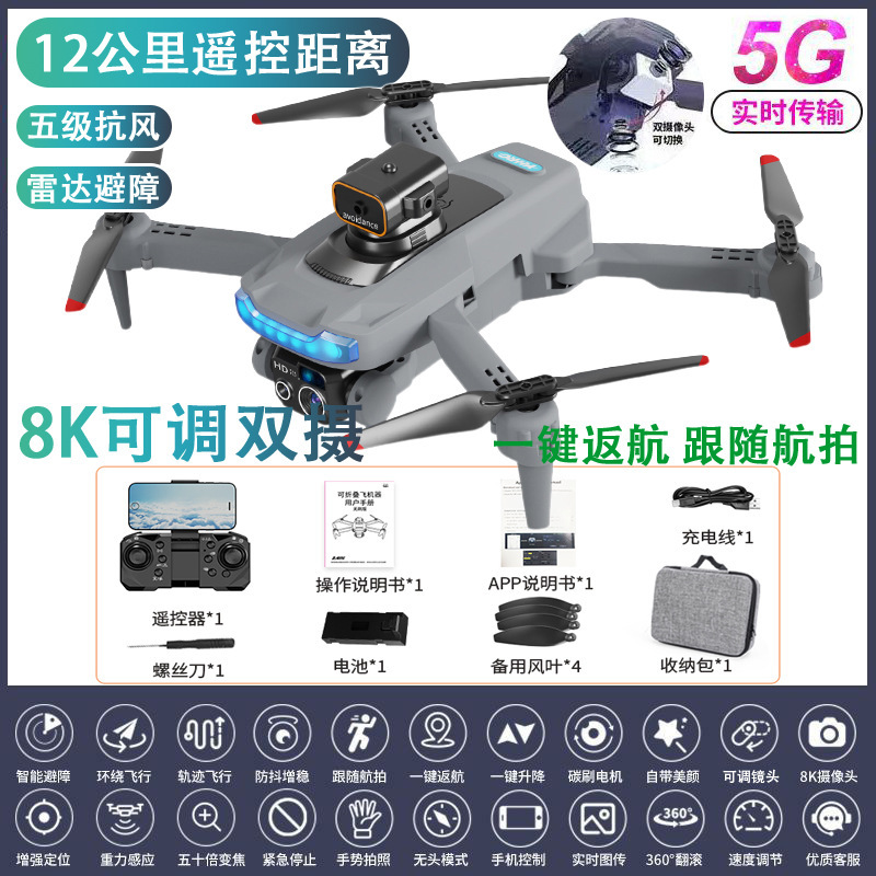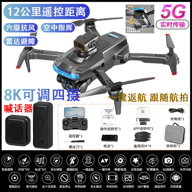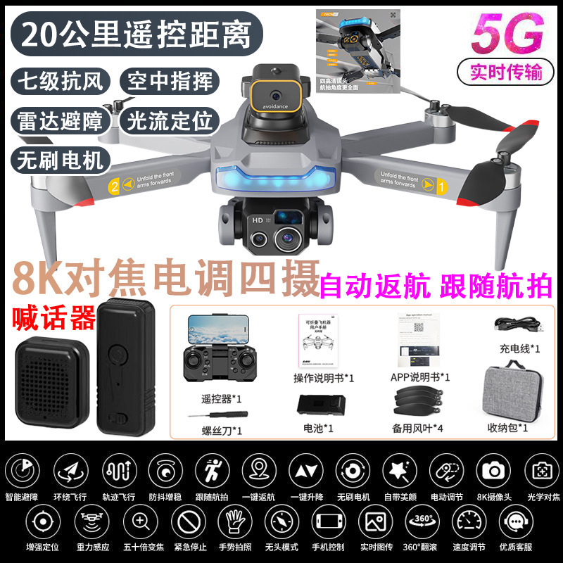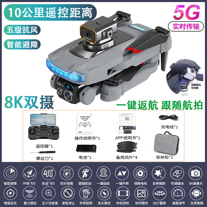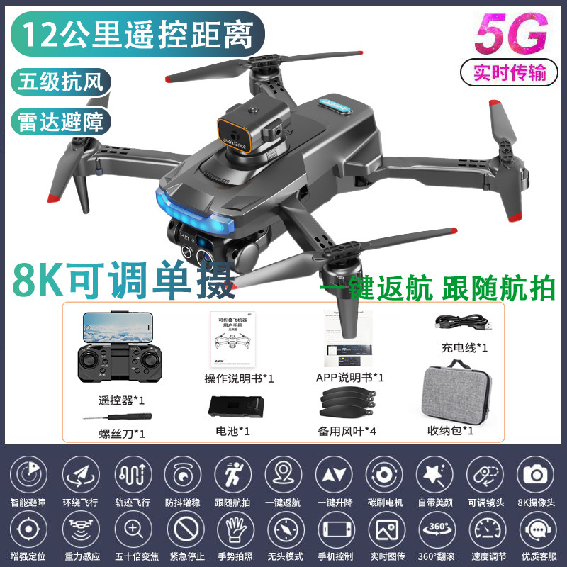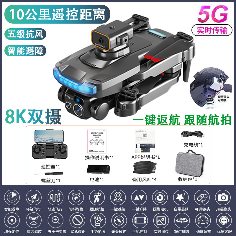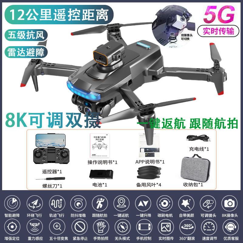 • 블랙 8K 듀얼 카메라 업그레이드 장애물 회피, 후속 조치, 바람 저항 및 흔들림 방지