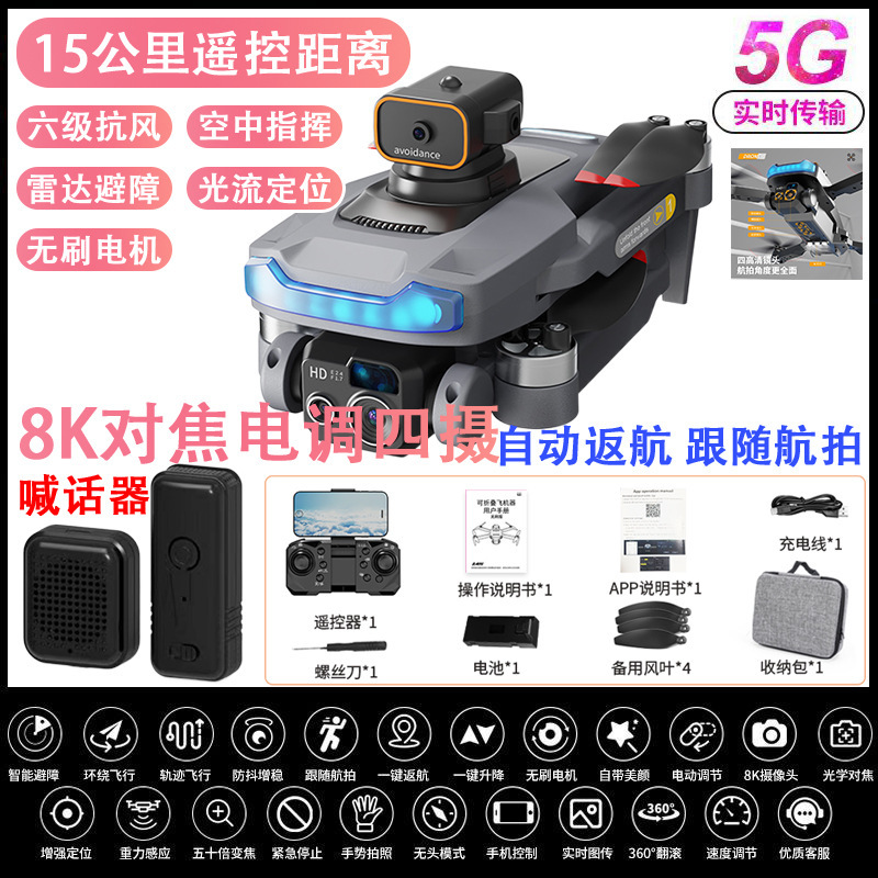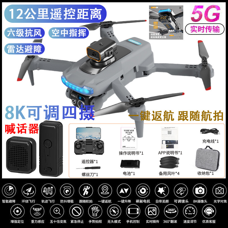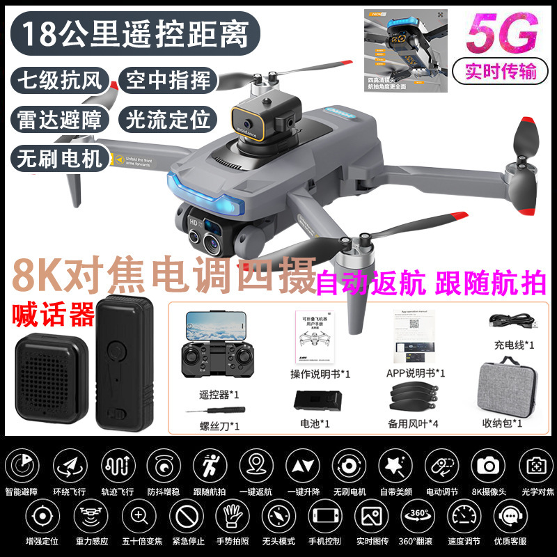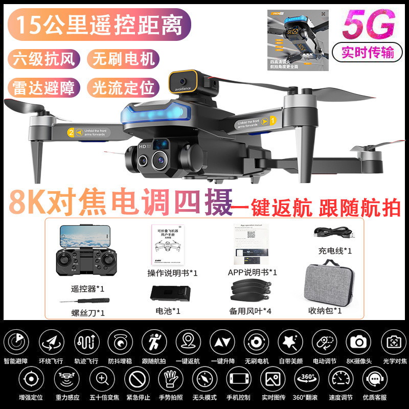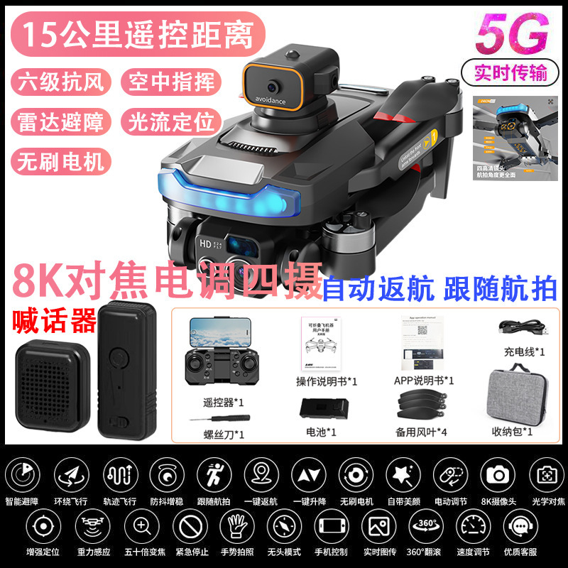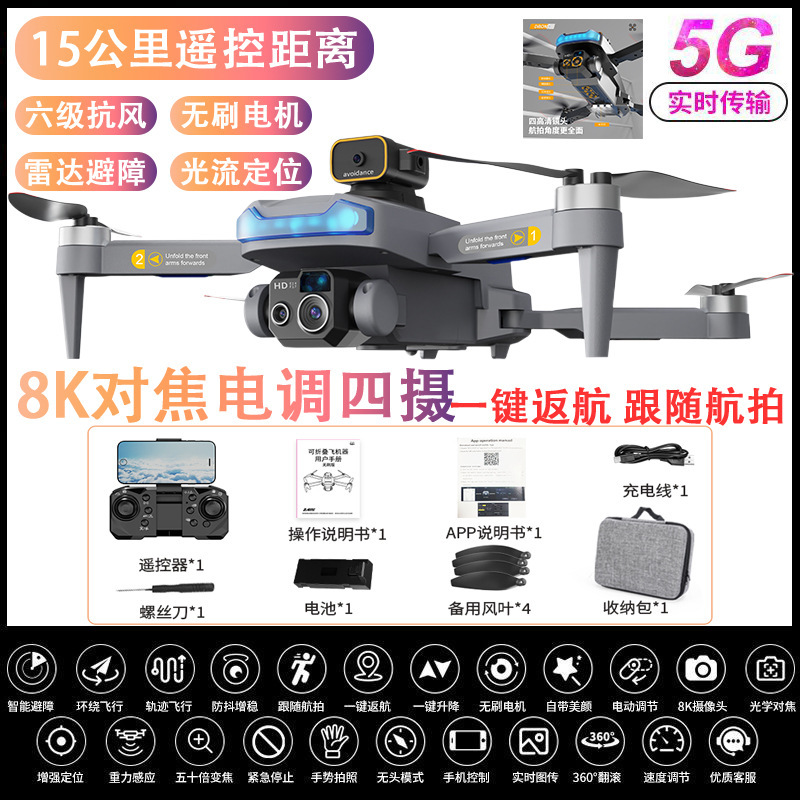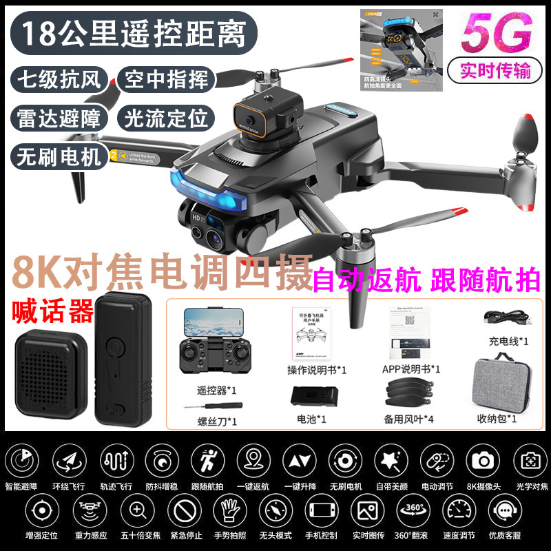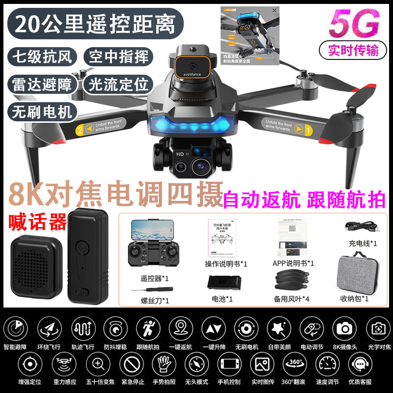 • 블랙 8K 듀얼 카메라 업그레이드 장애물 회피, 후속 조치, 바람 저항 및 흔들림 방지