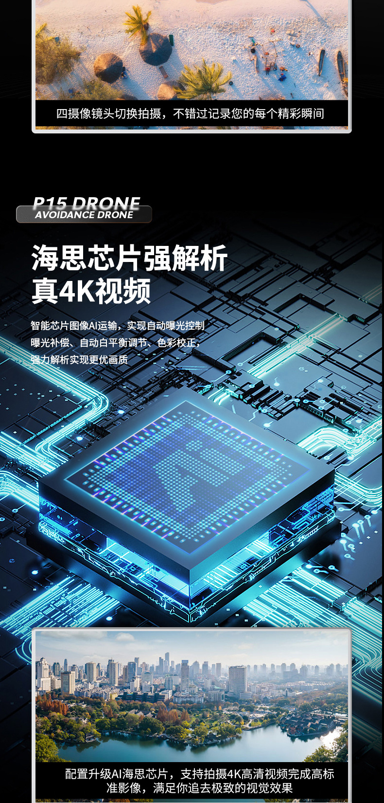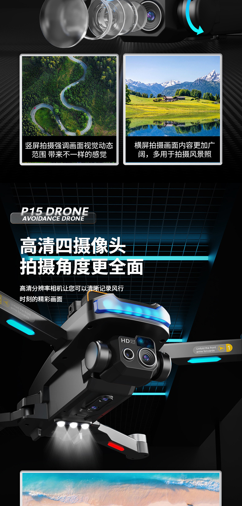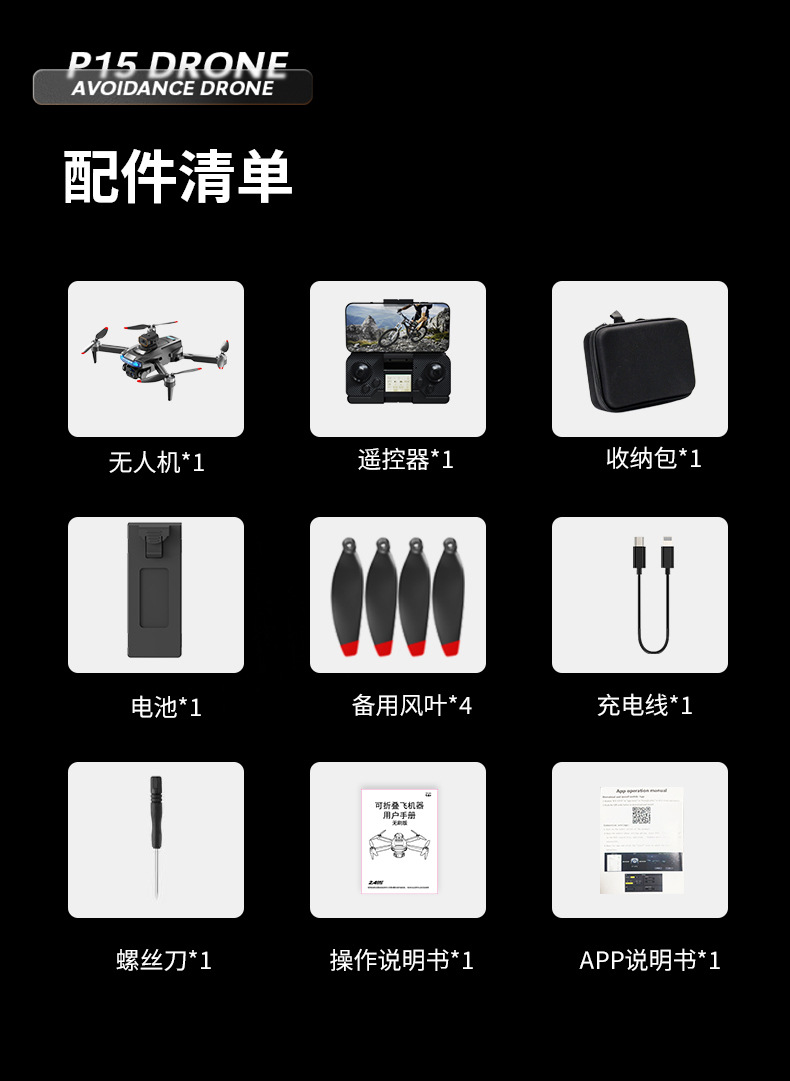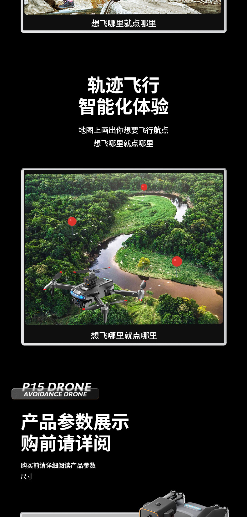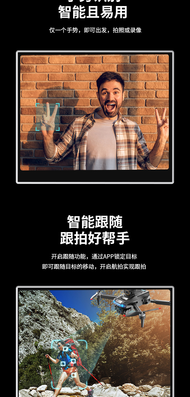• 블랙 듀얼 카메라 - 야간 순항, 장애물 회피, 추적 및 복귀, 바람 저항 및 흔들림 방지