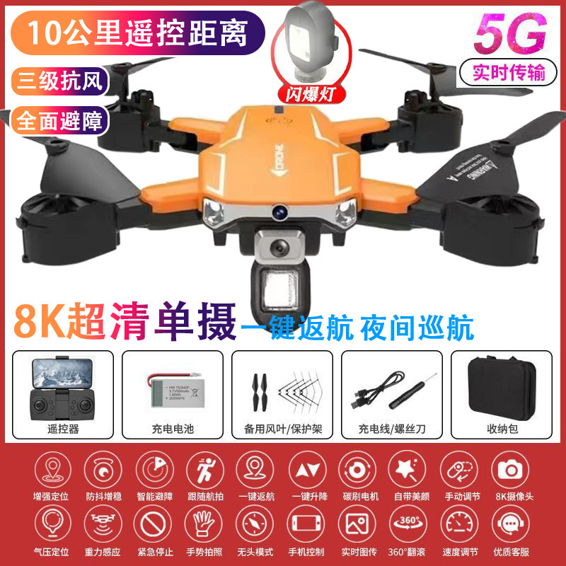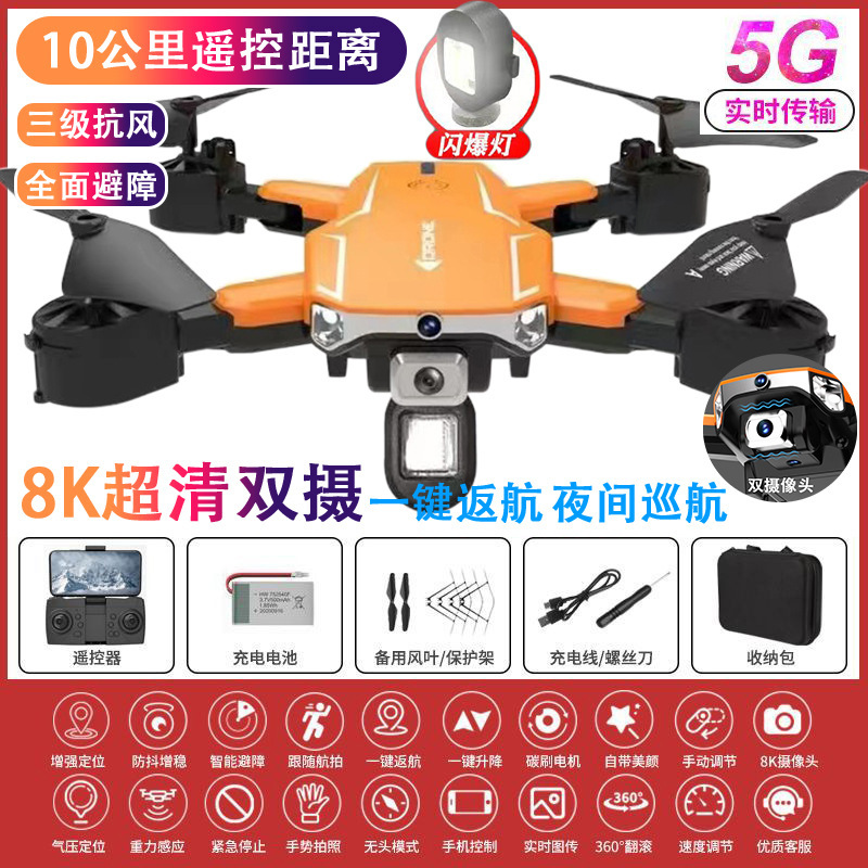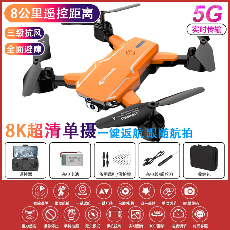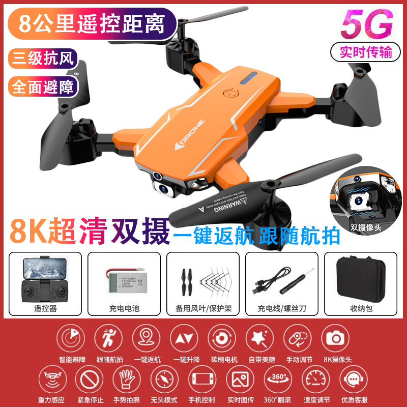 • Orange 8K 듀얼 카메라 업그레이드 장애물 회피, 추적 및 복귀, 바람 저항 및 흔들림 방지