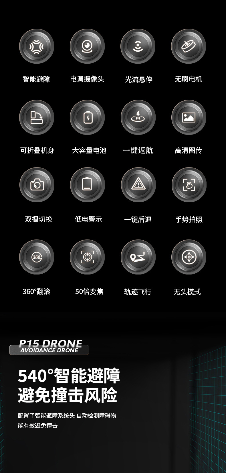 • 자동 복귀, 흔들림 방지, 단일 카메라, 720도 레이더 장애물 회피 회색