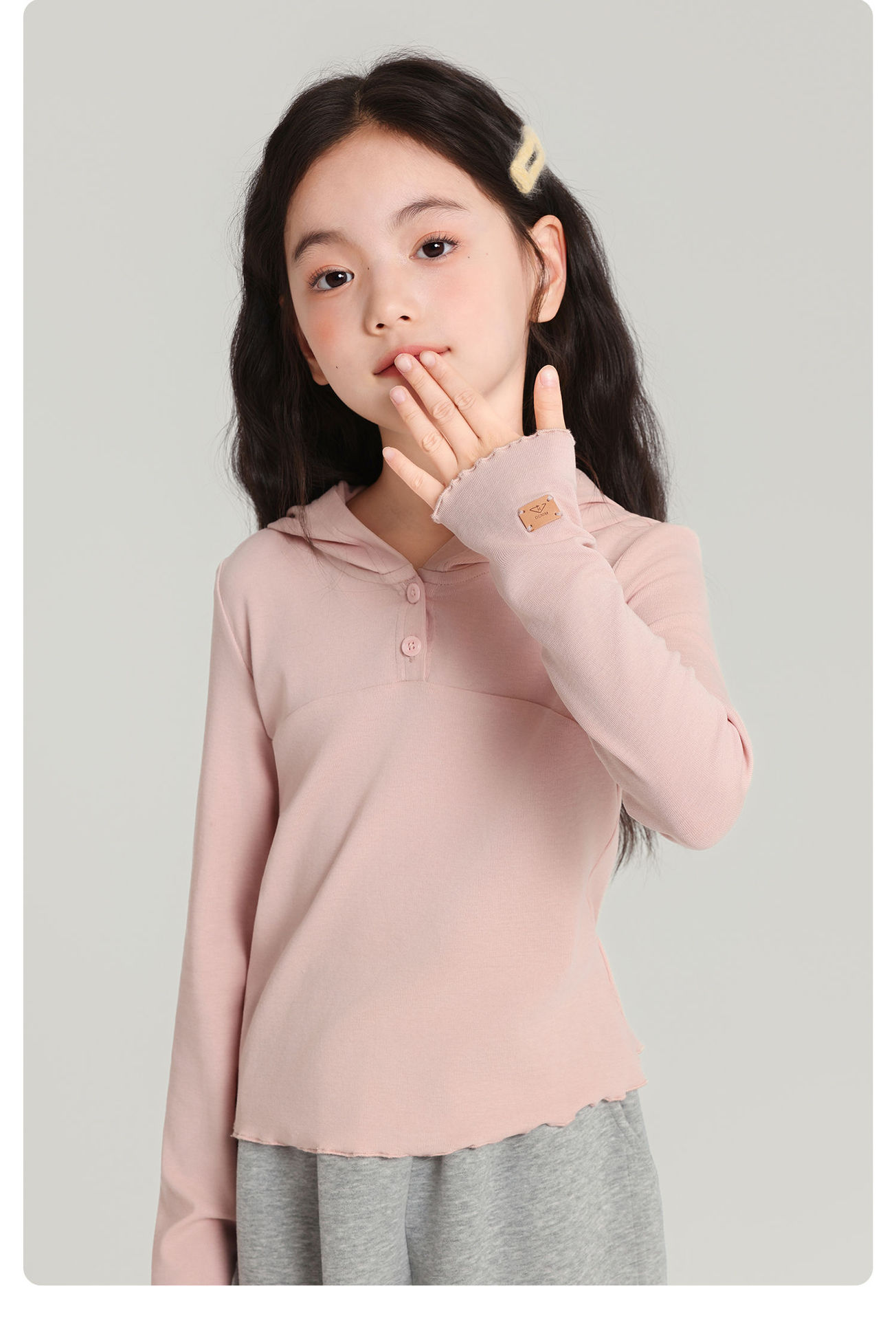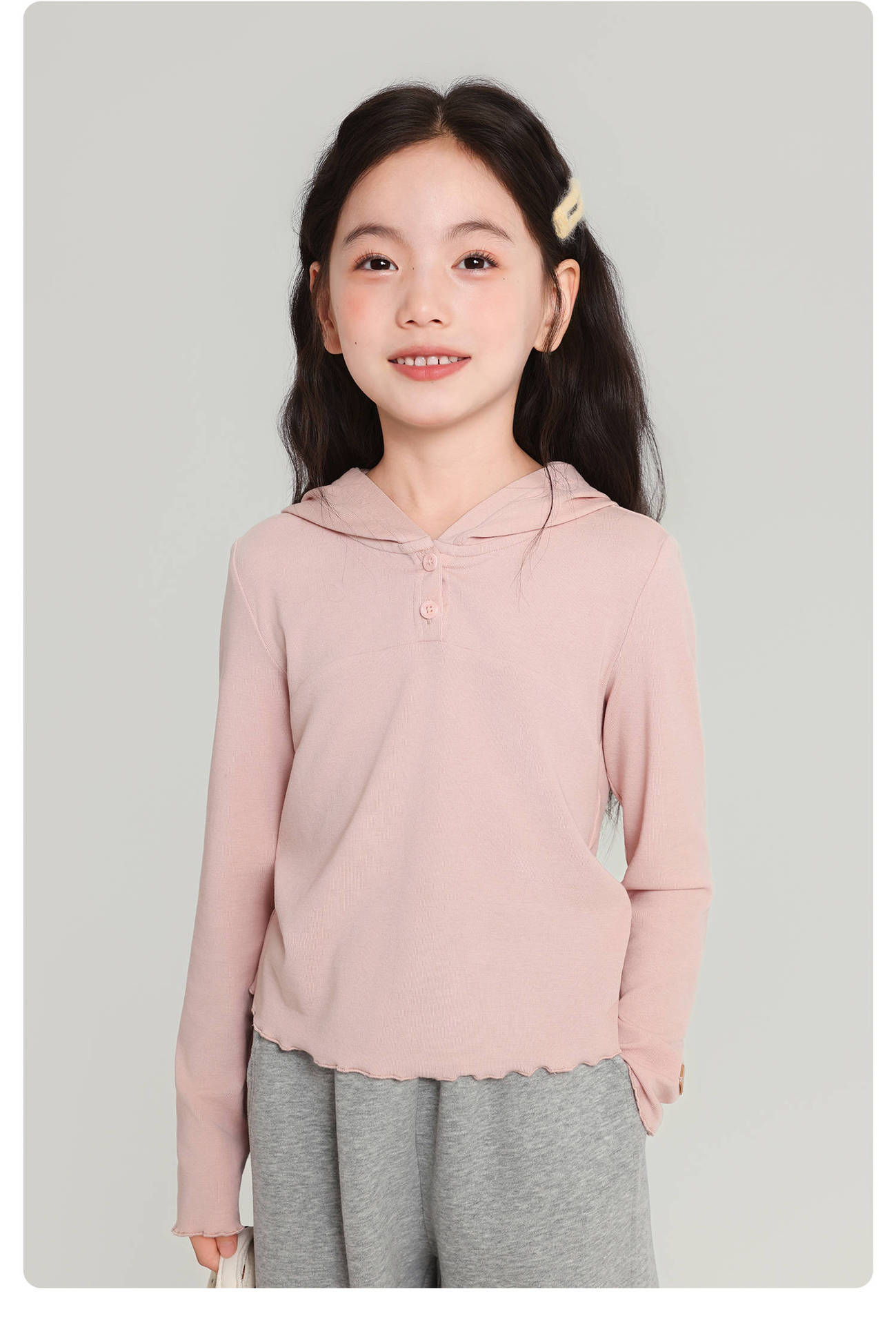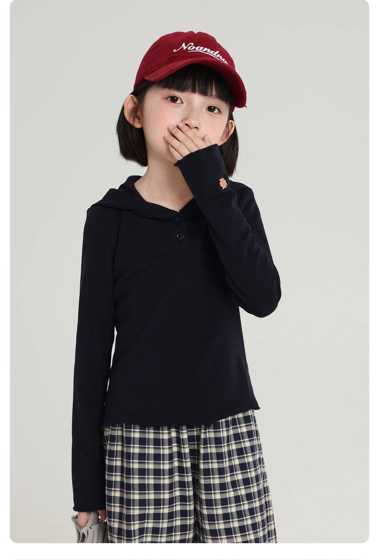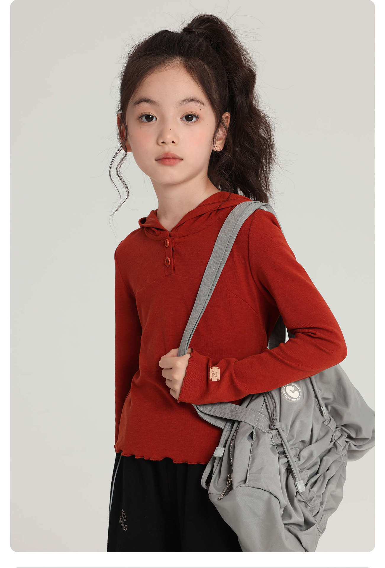 Pudding Haru 아동복 레이스 후드 긴팔 셔츠 2025 가을 새로운 슬림핏 여아 긴팔 티셔츠스토어 가기