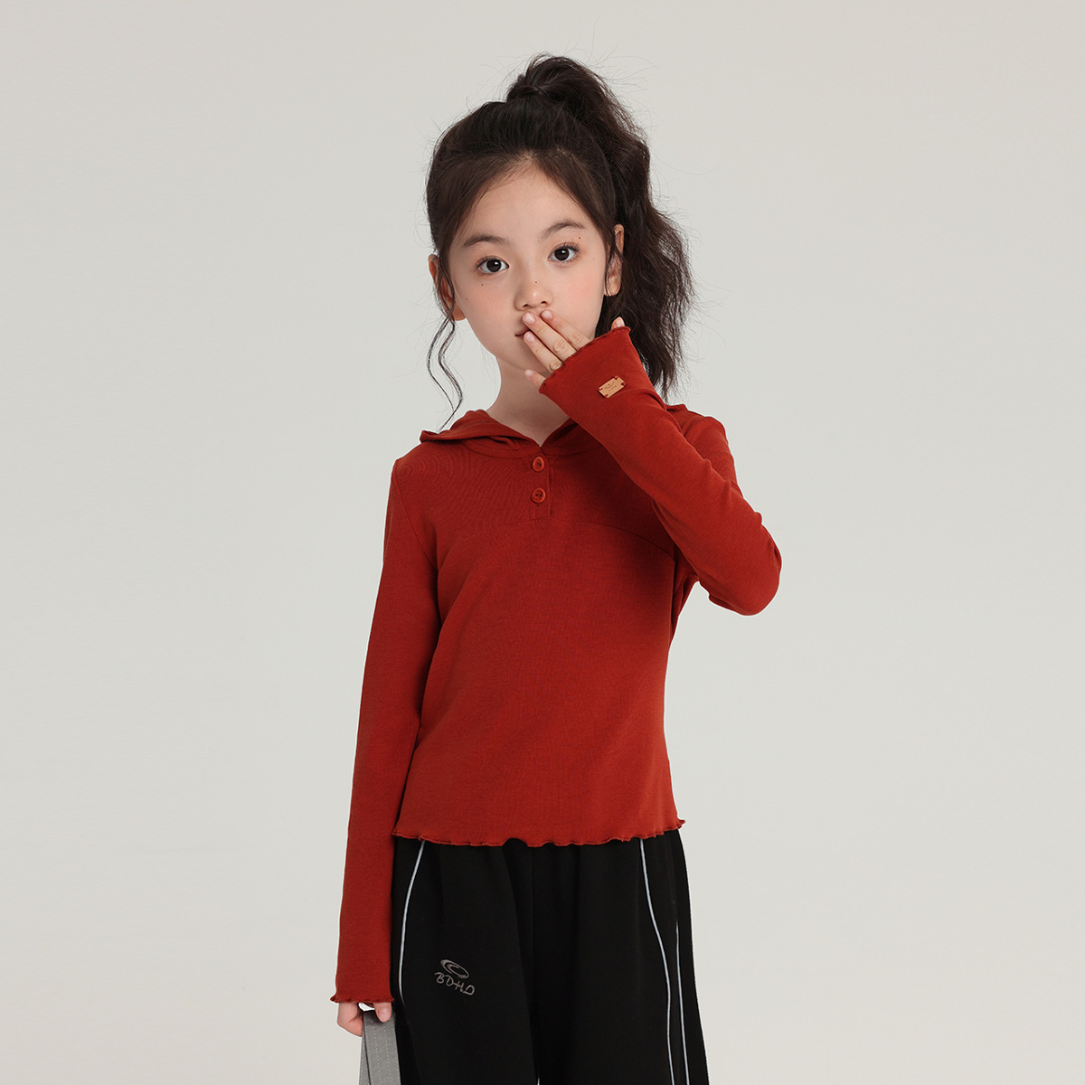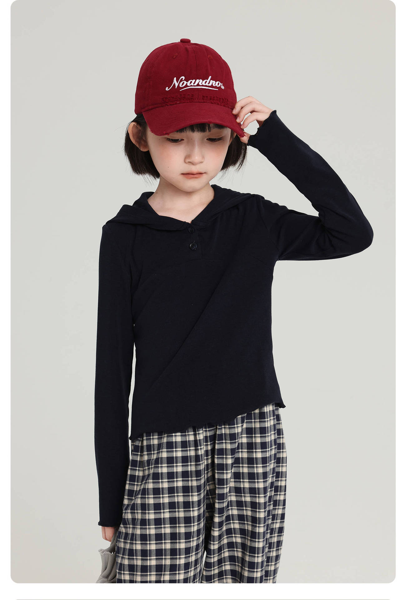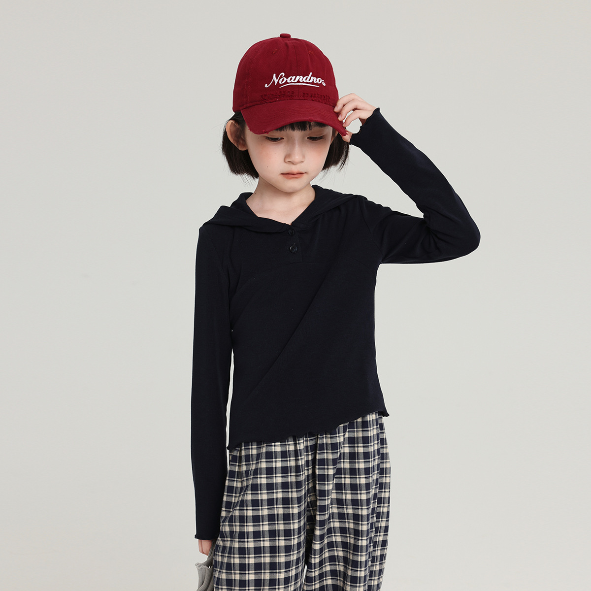 Pudding Haru 아동복 레이스 후드 긴팔 셔츠 2025 가을 새로운 슬림핏 여아 긴팔 티셔츠스토어 가기