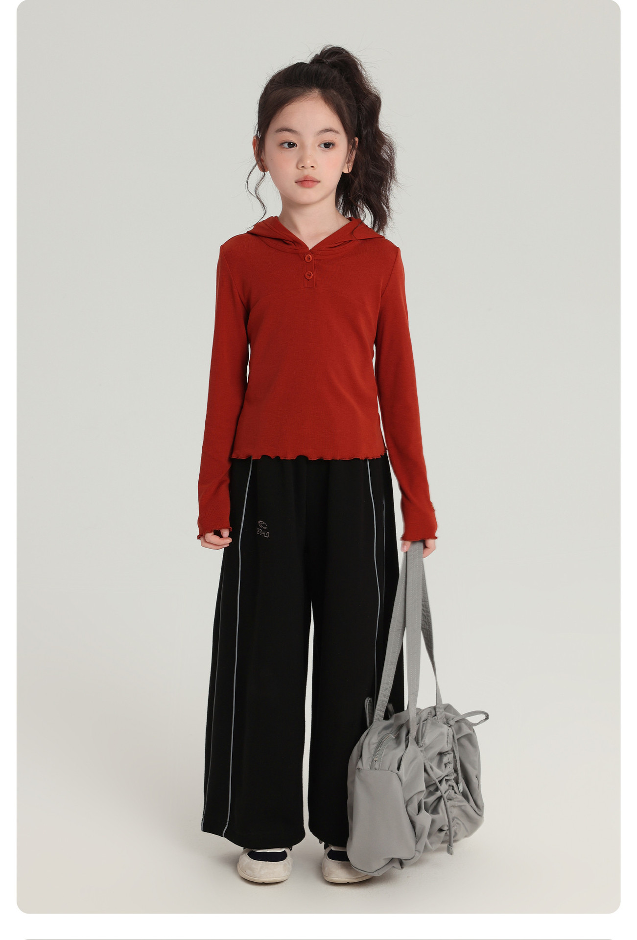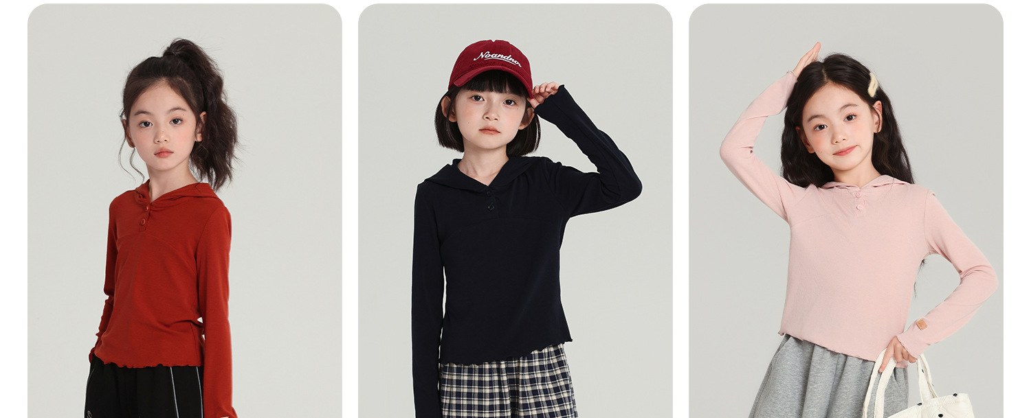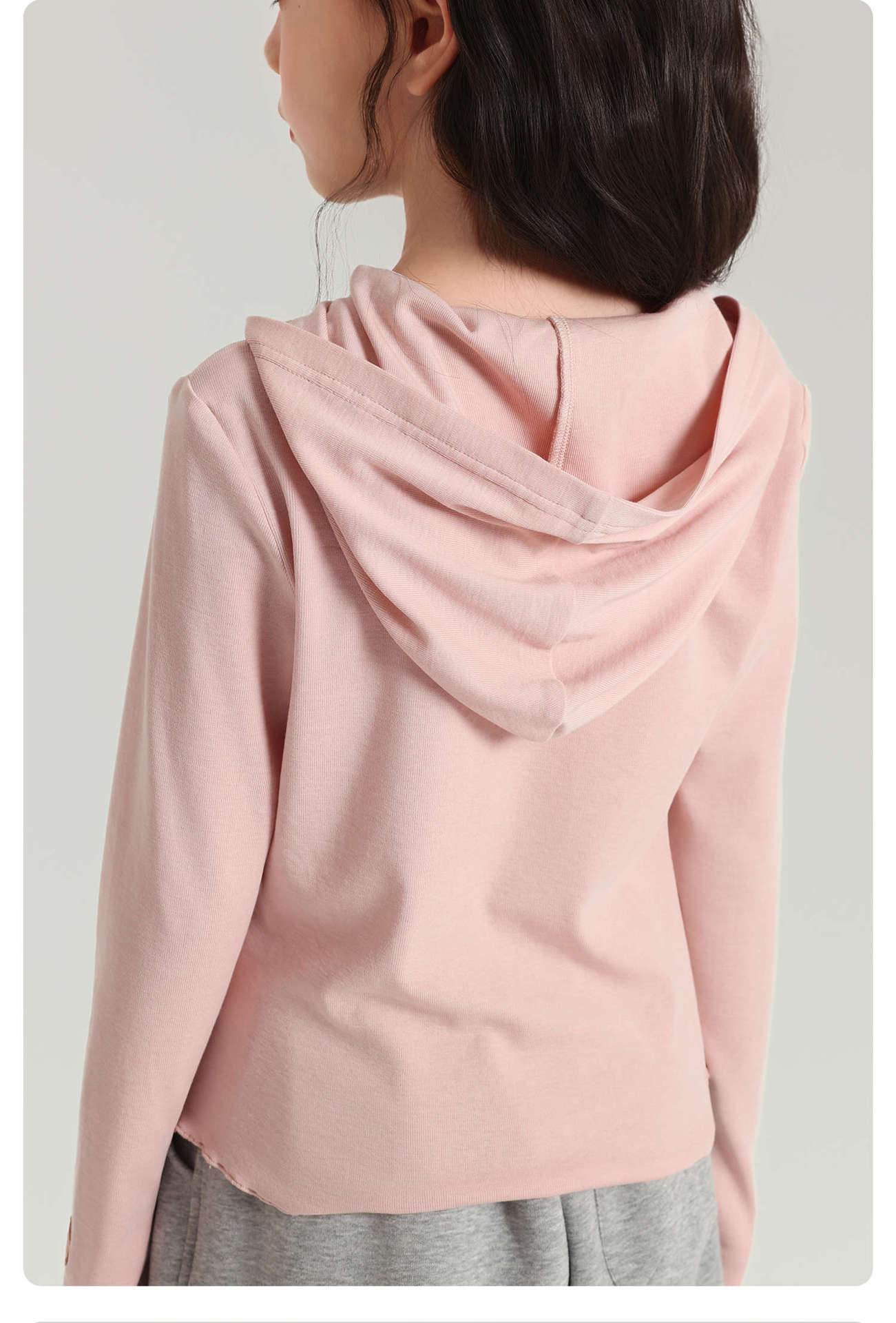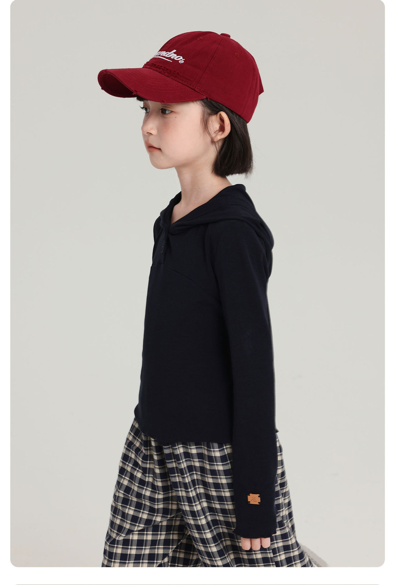Pudding Haru 아동복 레이스 후드 긴팔 셔츠 2025 가을 새로운 슬림핏 여아 긴팔 티셔츠스토어 가기