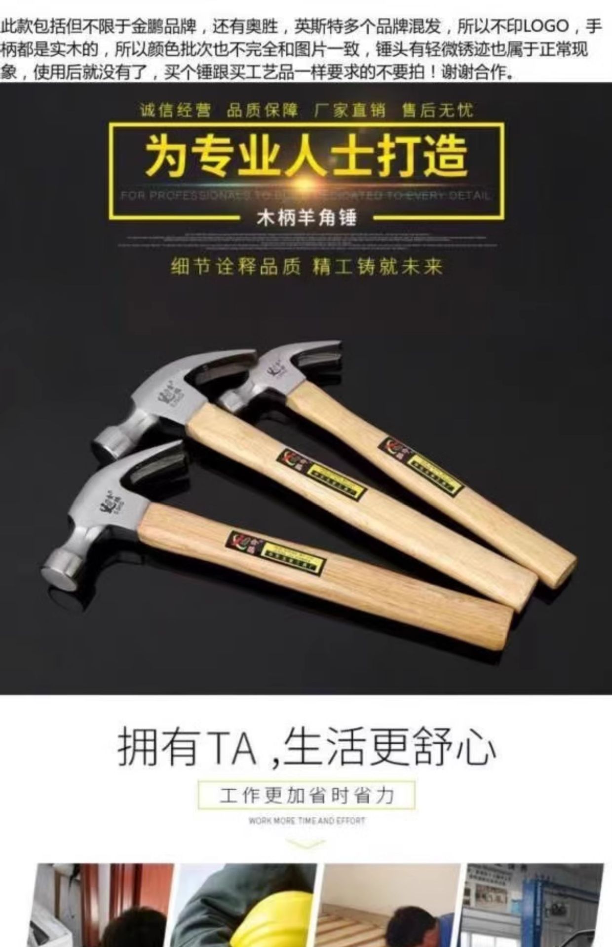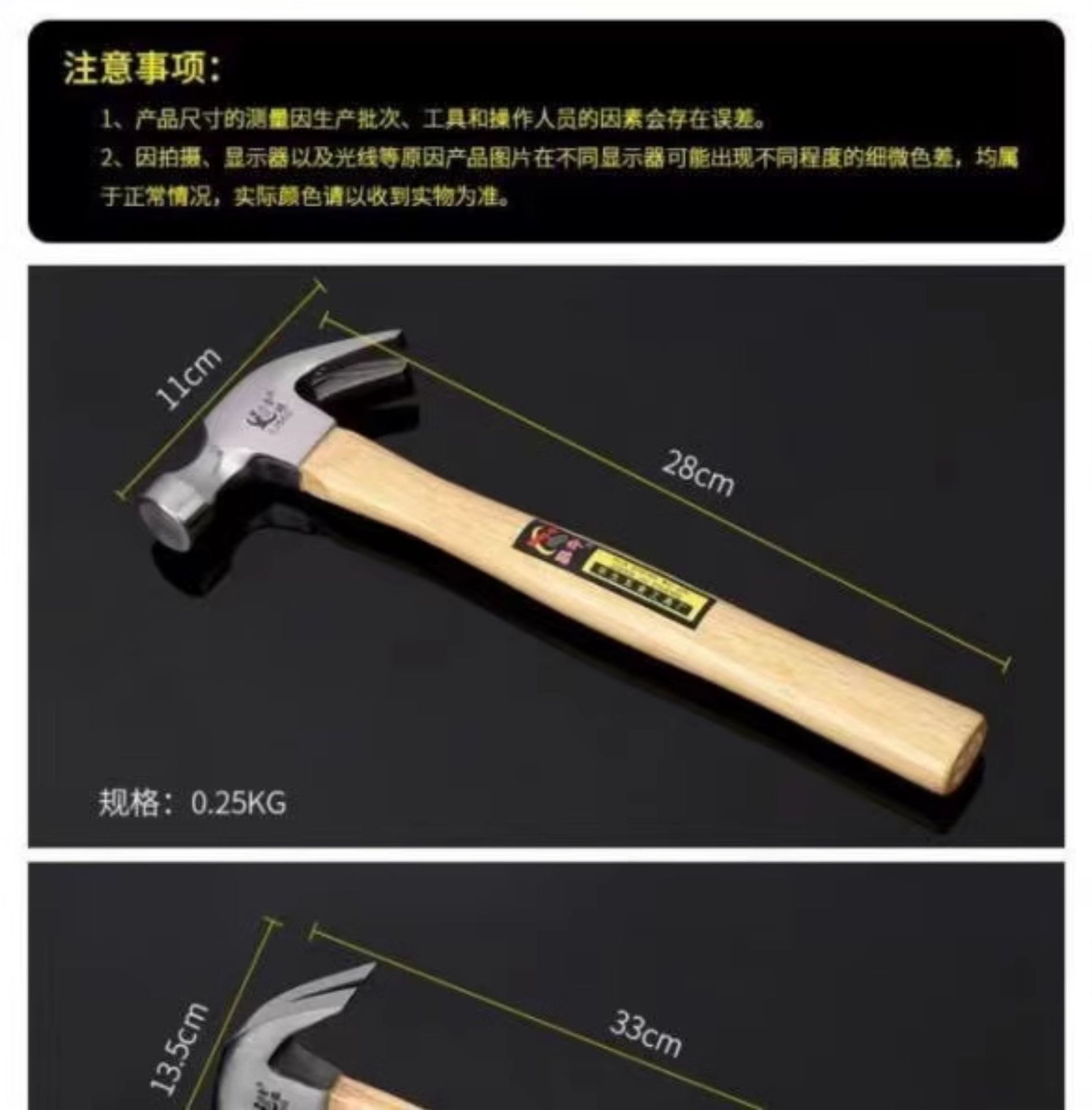 • 0.5kg 나무 손잡이 클로 해머
