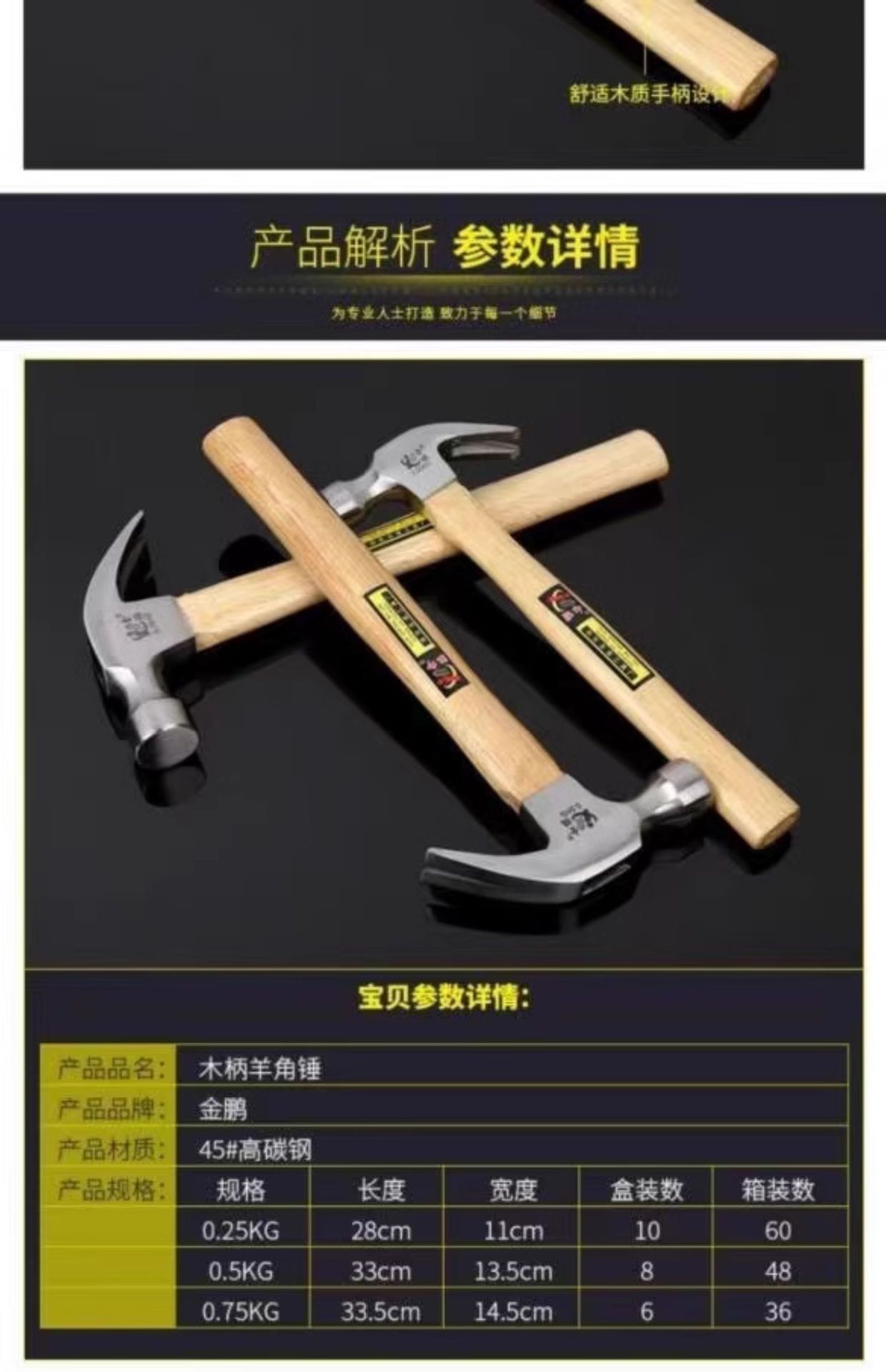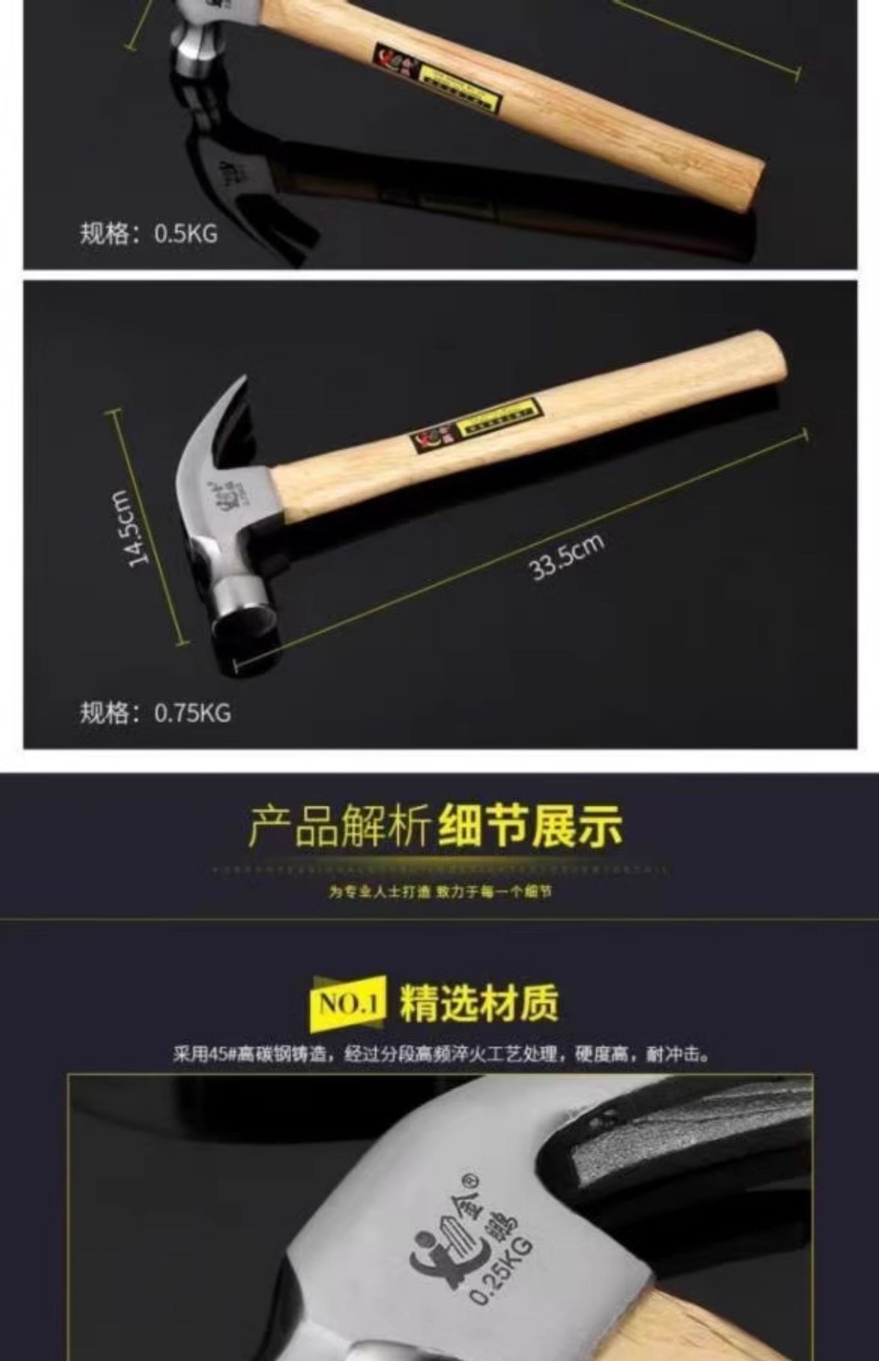 • 0.75kg 나무 손잡이 집게 망치