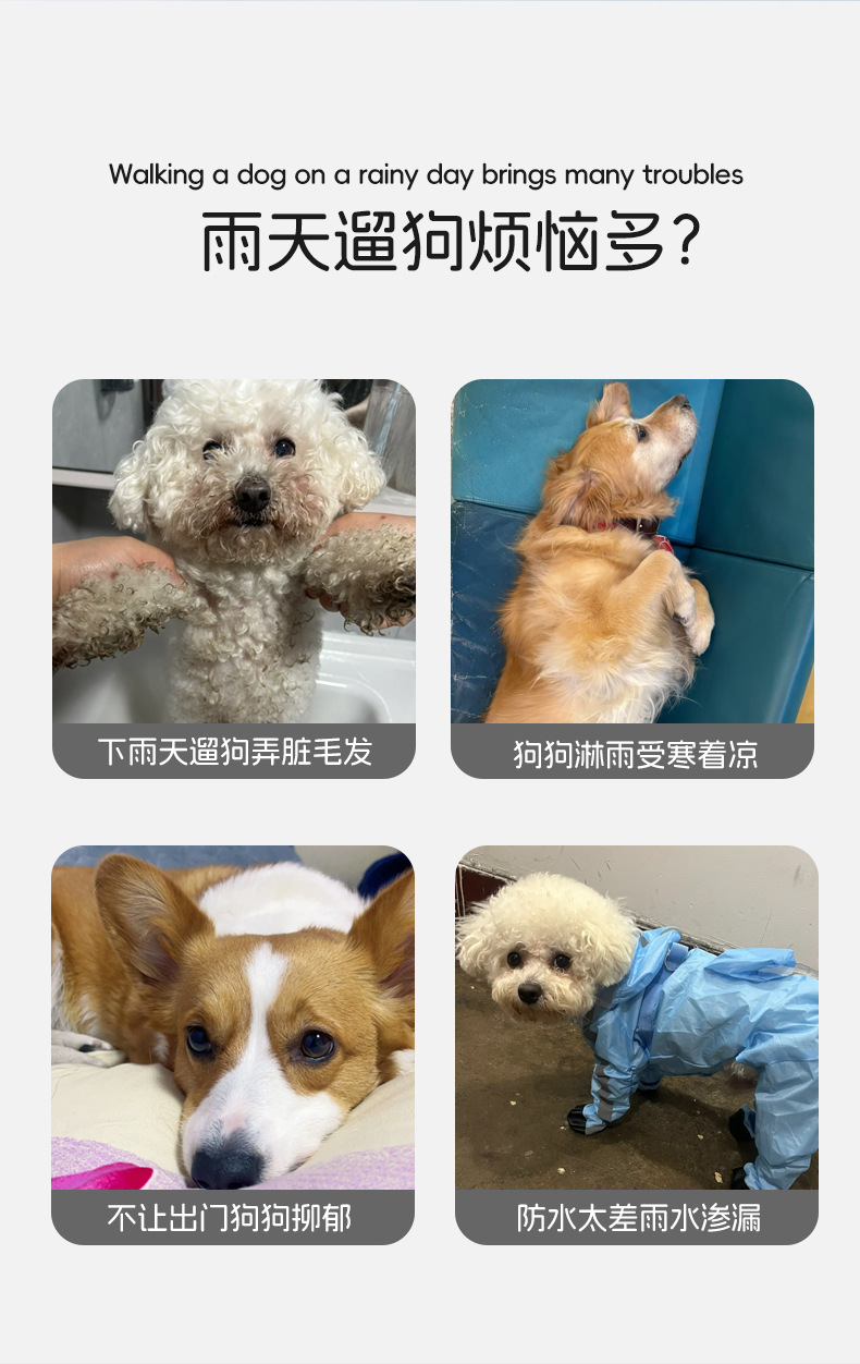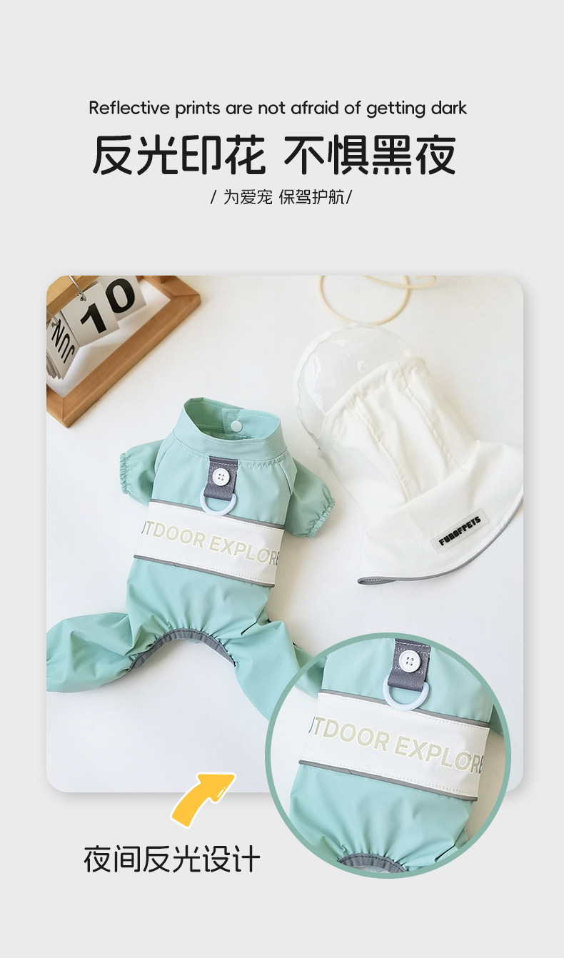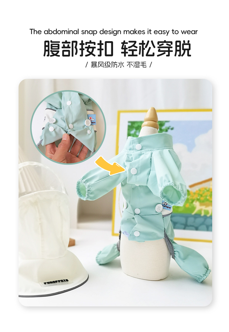 강아지 비옷, 4다리 배 방수 판초, 탈부착 가능한 견인모자, 소형견 테디펫 도매스토어 가기