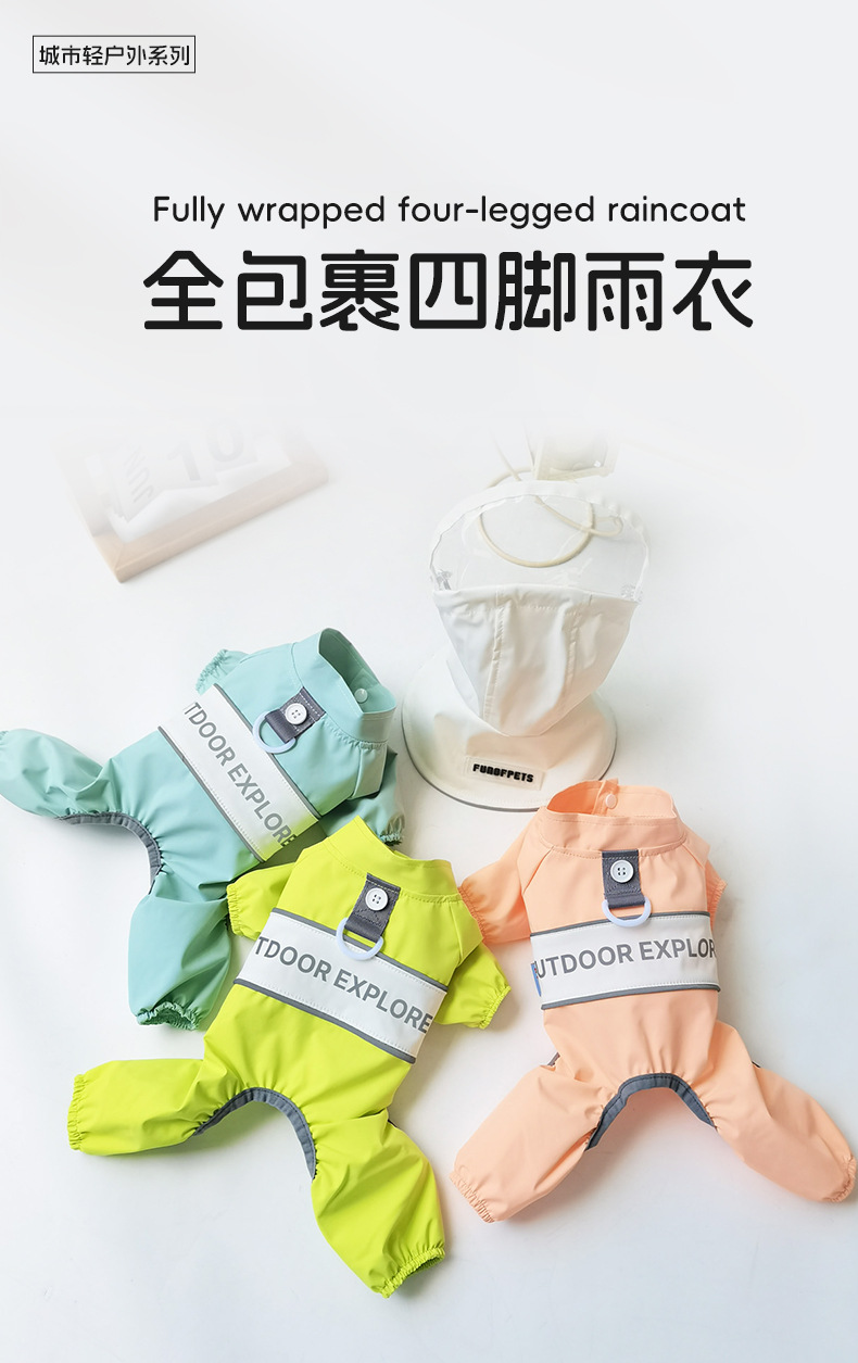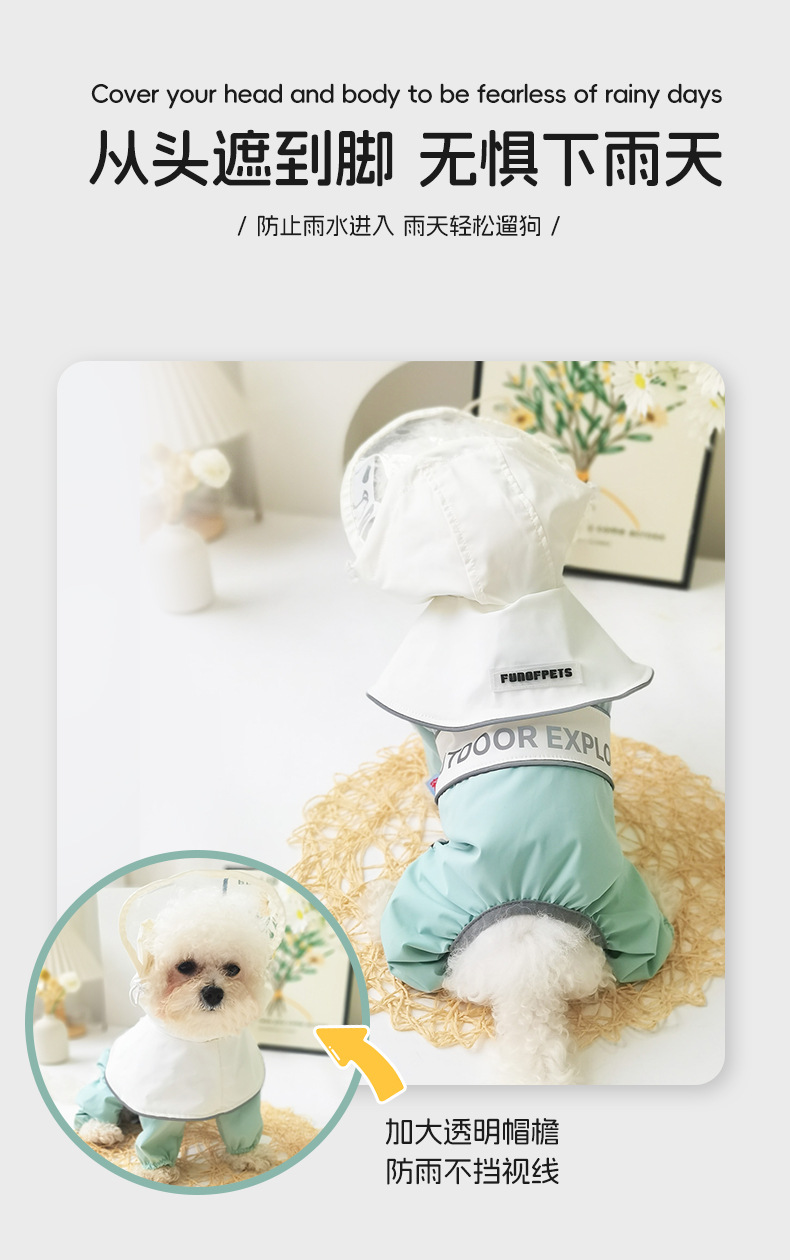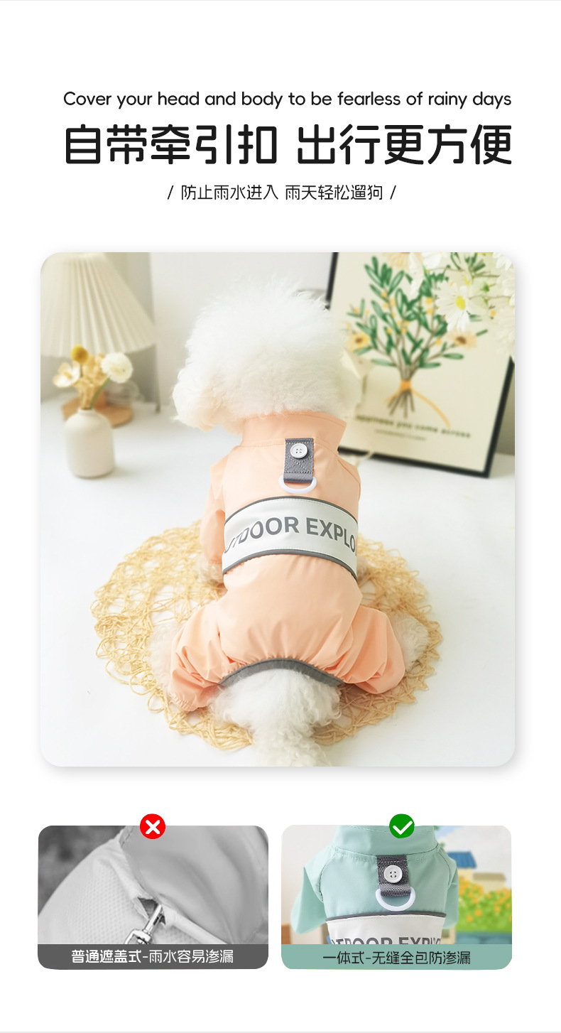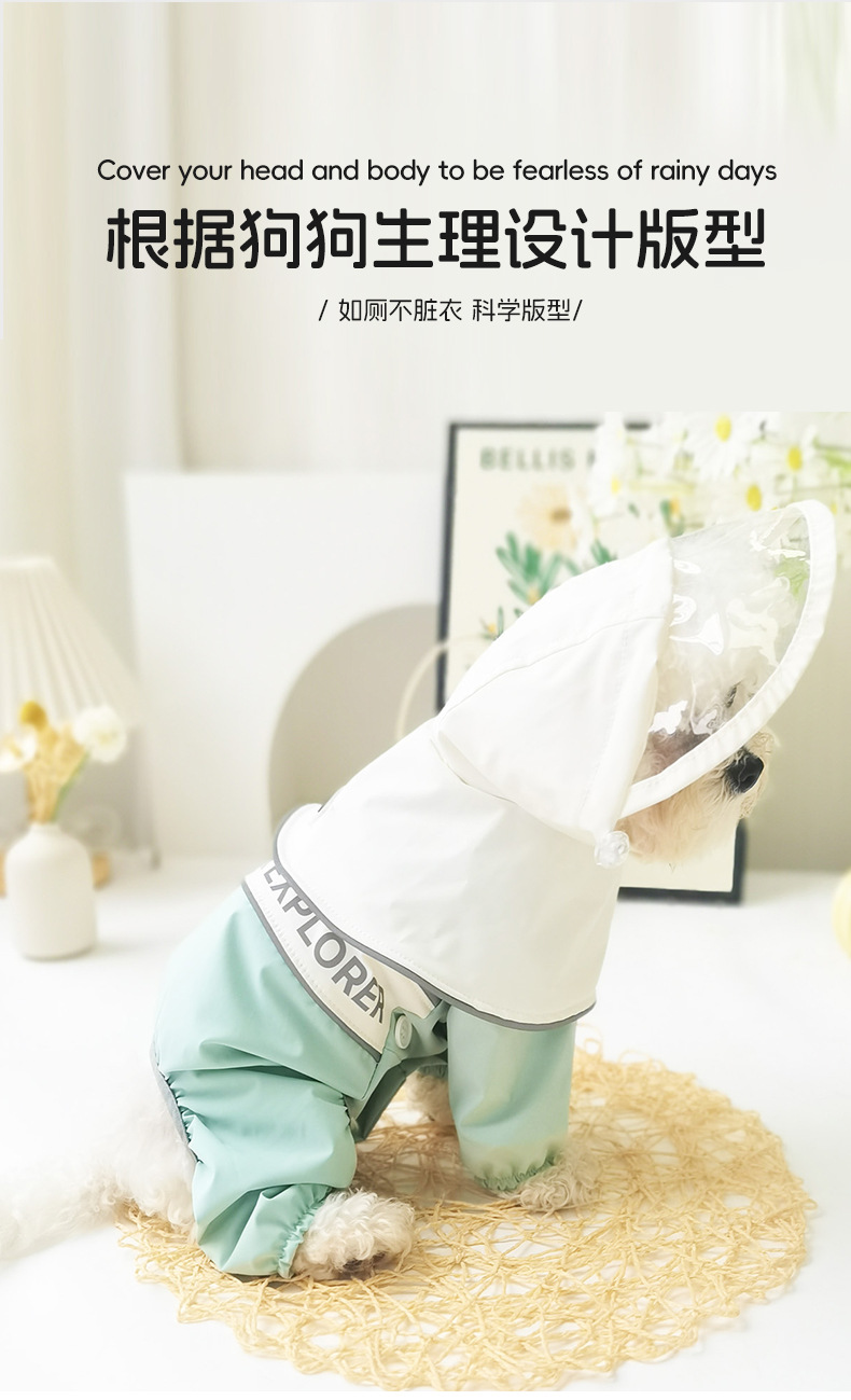 강아지 비옷, 4다리 배 방수 판초, 탈부착 가능한 견인모자, 소형견 테디펫 도매