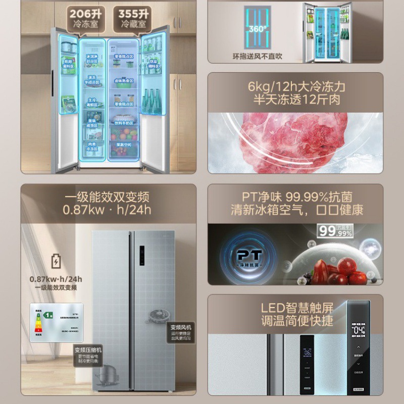냉장고 BCD-562WKPM(E)용 가변 주파수 1단계 에너지 소비 공냉식 서리 방지