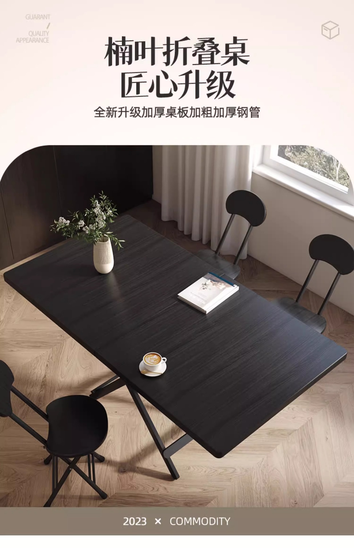 • [테이블과 의자 조합] 100*60 직사각형 테이블 + 검은색 나뭇결 접이식 의자 2개