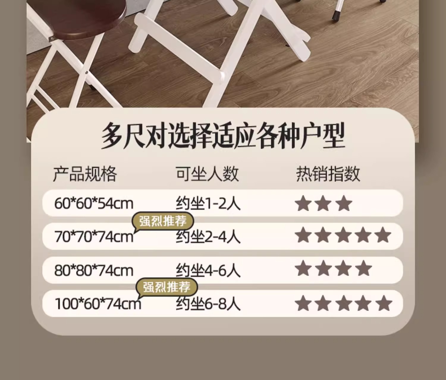 • [4-6인용] 사각 테이블 80*80*74 화이트 다리 + 따뜻한 화이트
