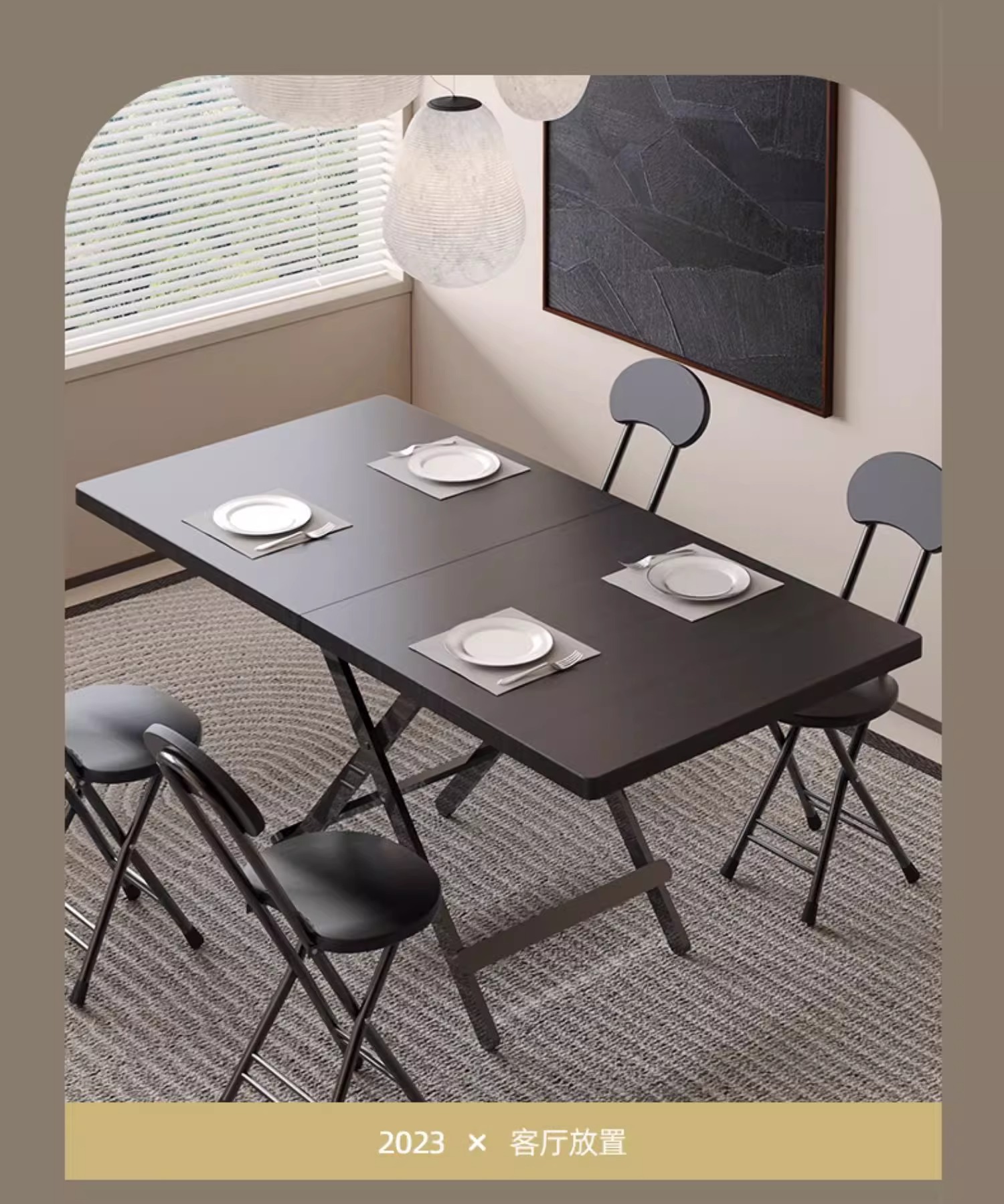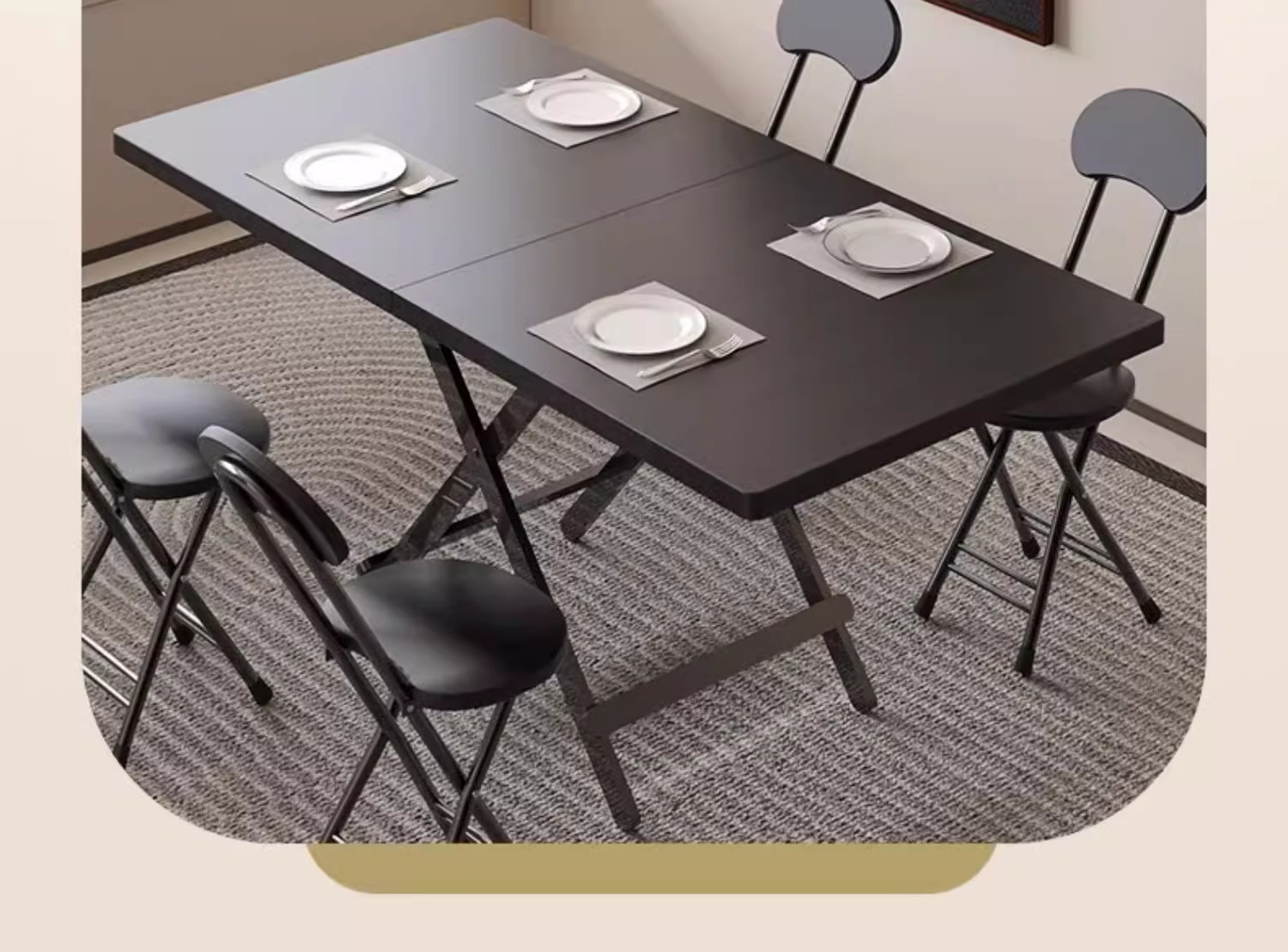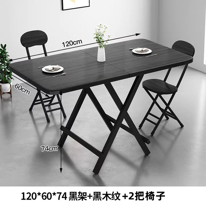 • [테이블과 의자 조합] 120*60 직사각형 테이블 + 검은색 나뭇결 접이식 의자 2개