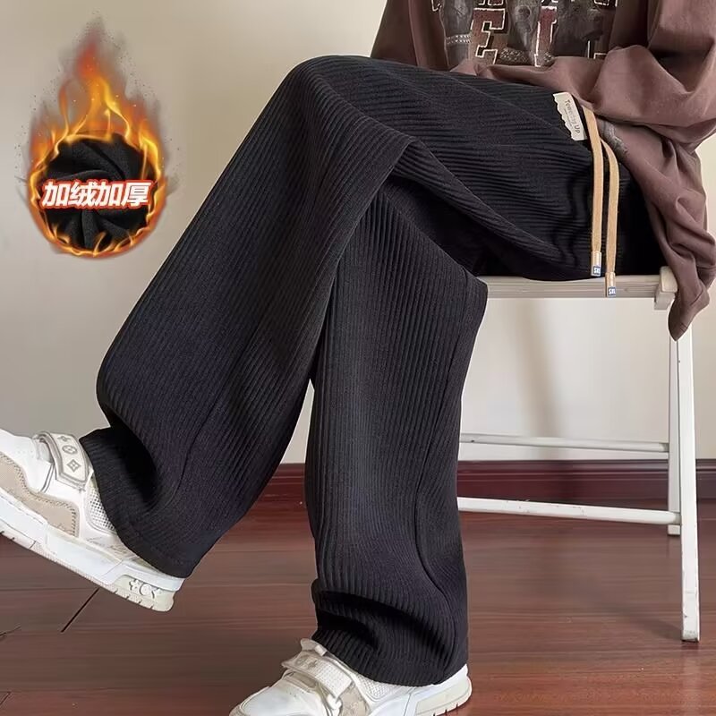 가을 겨울 남성용 고급 블랙 코듀로이 팬츠, 고급 오버사이즈 스포츠 팬츠, 셔닐 스트레이트 와이드 팬츠스토어 가기