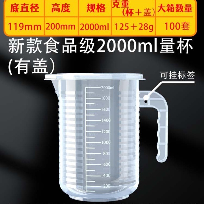 두꺼운 플라스틱 계량컵 눈금과 주둥이 포함 1000/2000ml 대용량 주방 베이킹 도구 상업용 가정용