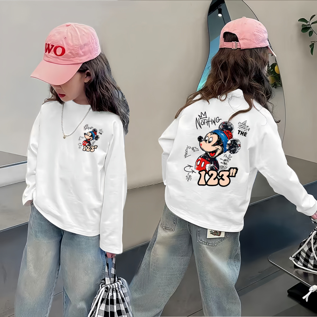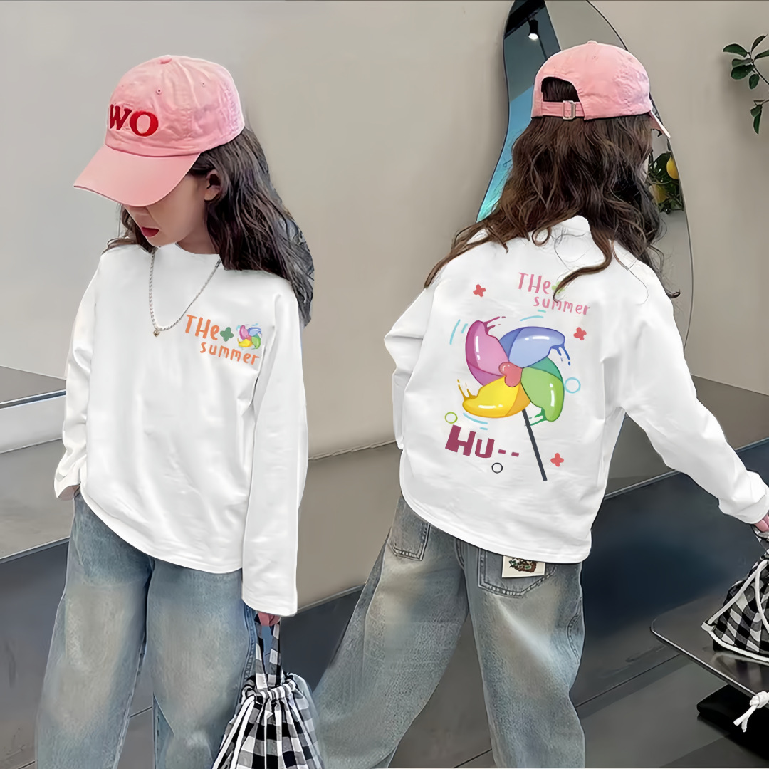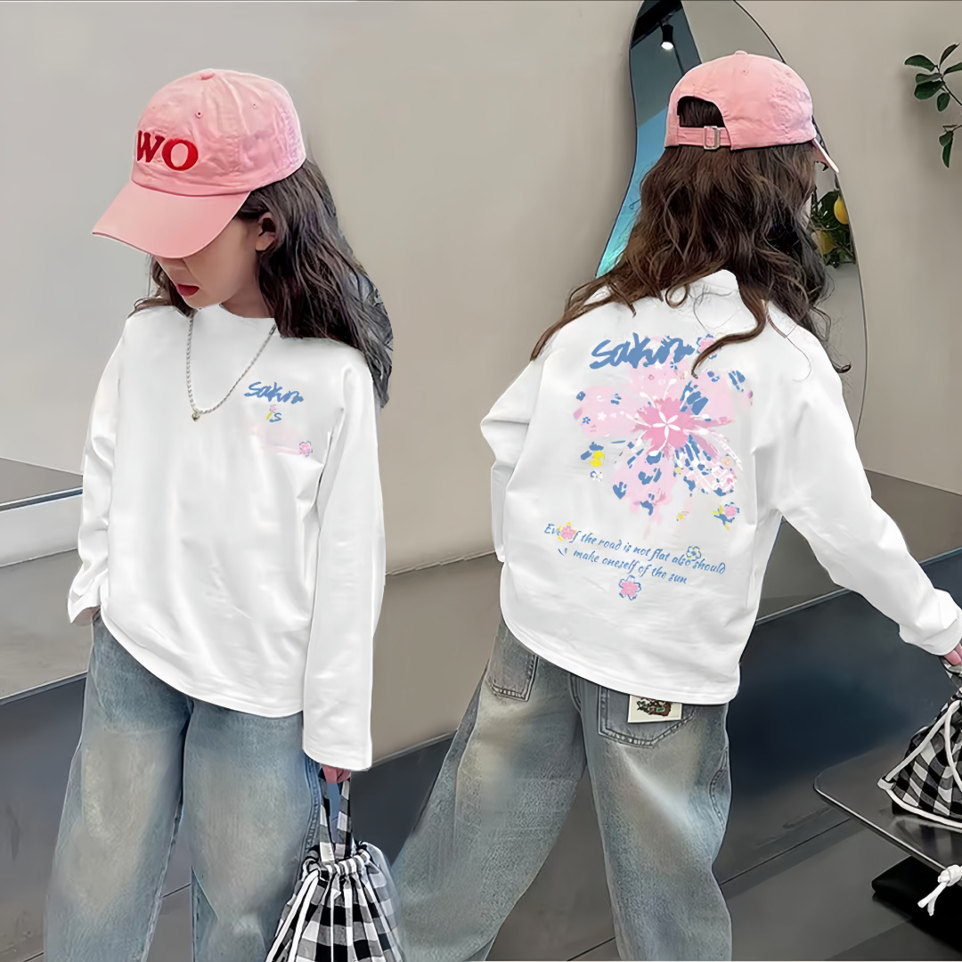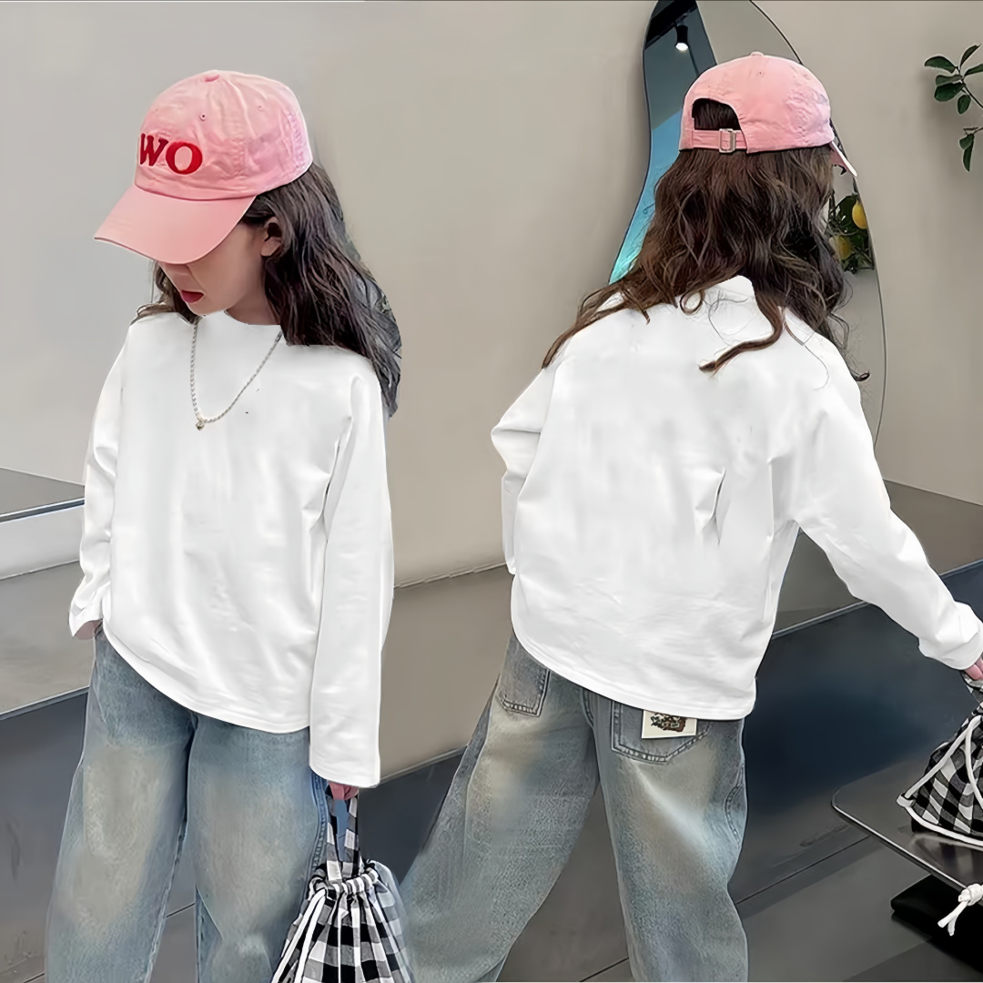 여자 순면 긴팔 T2025 봄, 가을 새로운 한국 스타일 다목적 라운드 넥 바닥 셔츠 캐주얼 프린트 바닥 탑