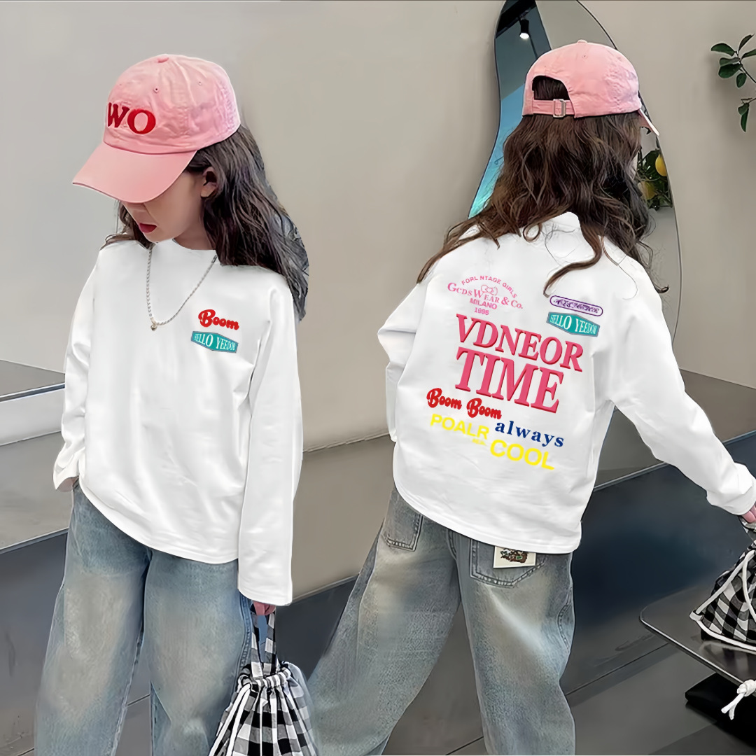 여자 순면 긴팔 T2025 봄, 가을 새로운 한국 스타일 다목적 라운드 넥 바닥 셔츠 캐주얼 프린트 바닥 탑스토어 가기