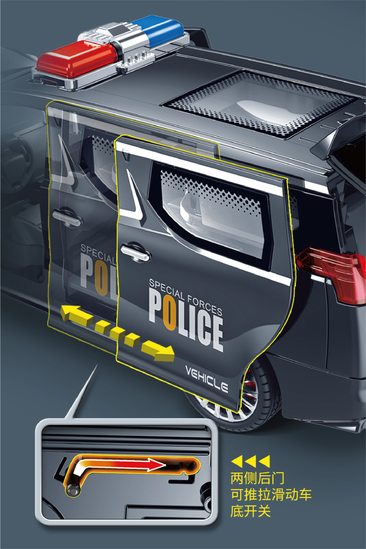 • 문을 열 수 있는 음향 및 조명 상용차 [경찰차 모델]