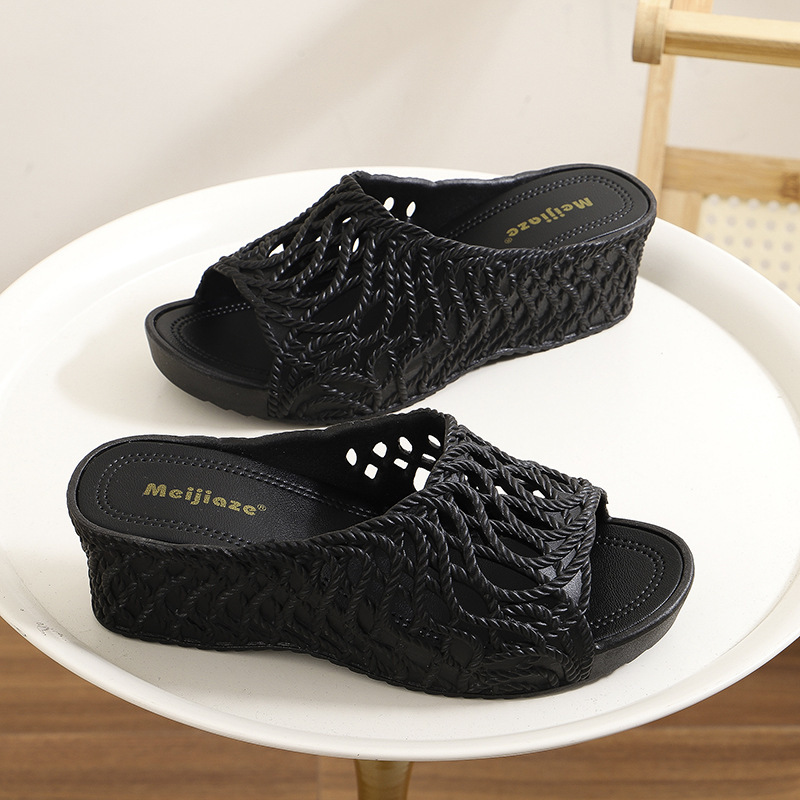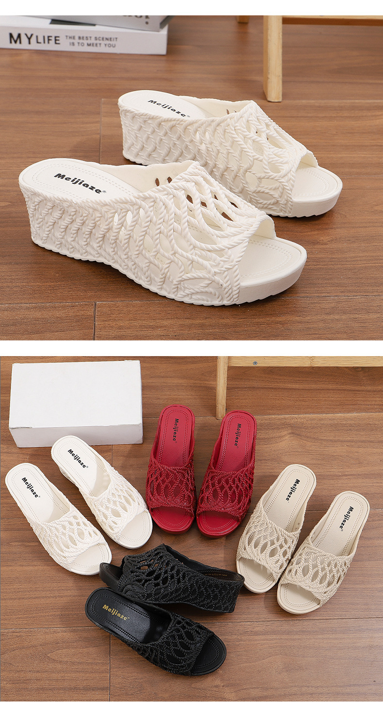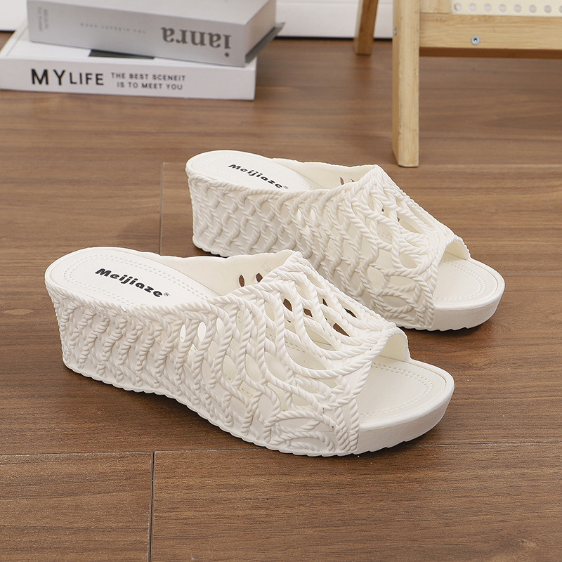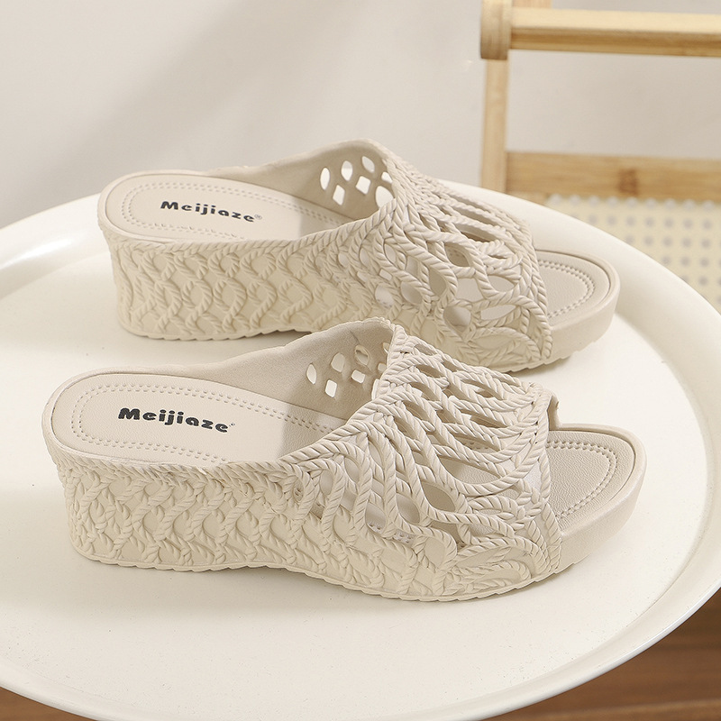 여성용 두꺼운 밑창 슬리퍼 2025 새로운 패션 다재다능한 여름 중공 하이힐 겉옷 미끄럼 방지 편안한 샌들