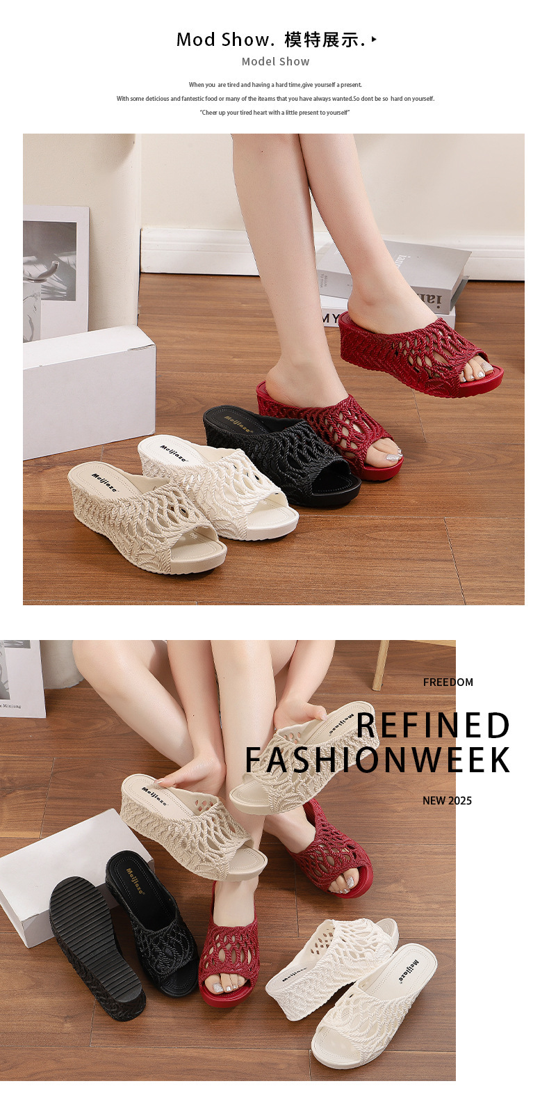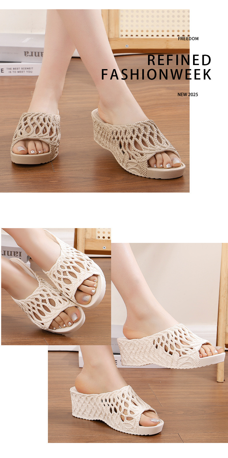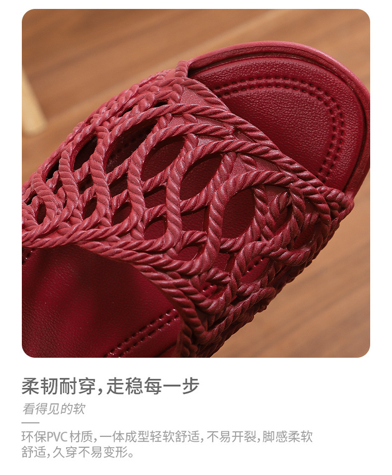 여성용 두꺼운 밑창 슬리퍼 2025 새로운 패션 다재다능한 여름 중공 하이힐 겉옷 미끄럼 방지 편안한 샌들