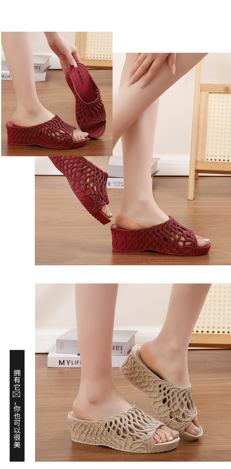 여성용 두꺼운 밑창 슬리퍼 2025 새로운 패션 다재다능한 여름 중공 하이힐 겉옷 미끄럼 방지 편안한 샌들스토어 가기