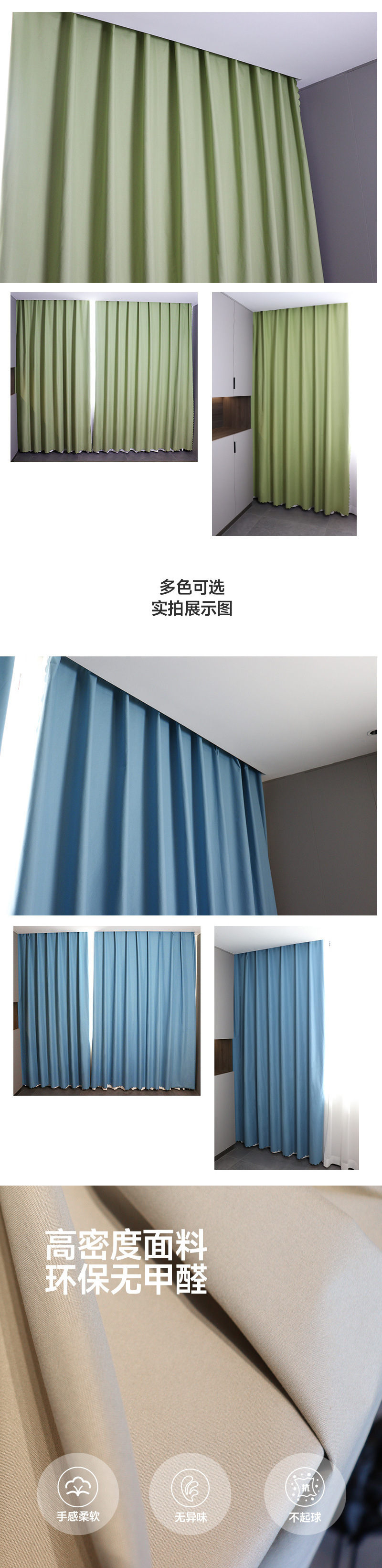 거실 발코니 바닥 창에 대한 완전한 차광 자외선 차단 커튼, 간단한 북유럽 스타일, 가벼운 럭셔리 스타일 주름 도매