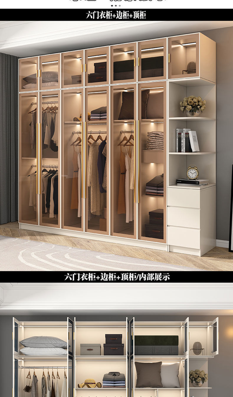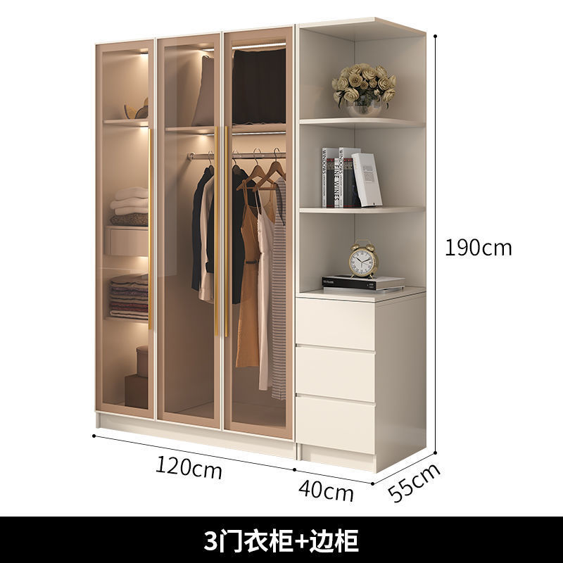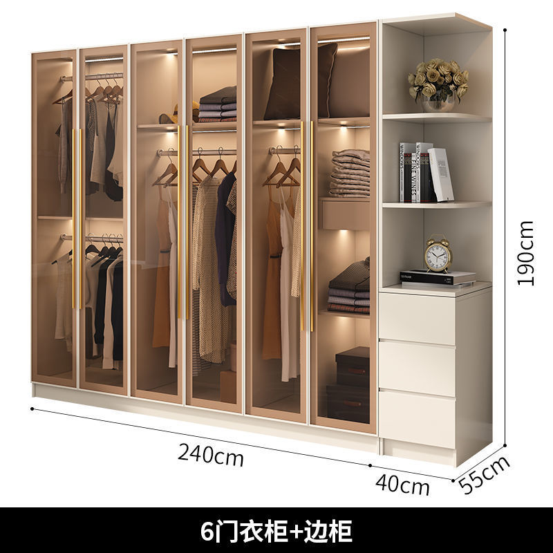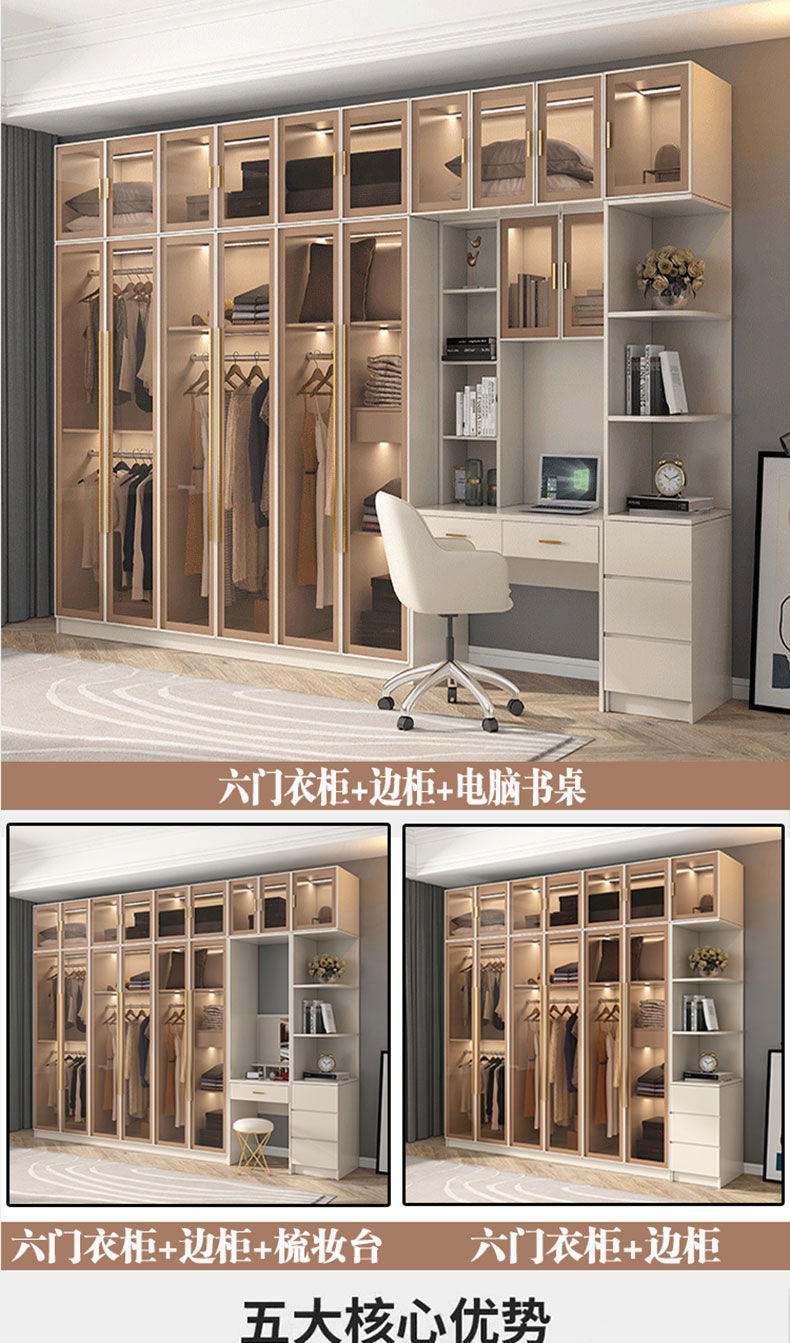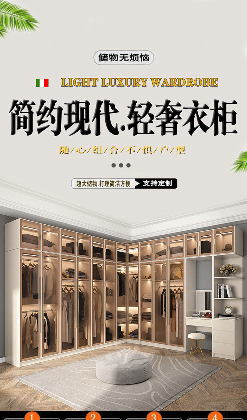옷장 침실 투명 유리 도어 현대적인 단순하고 가벼운 럭셔리 드레싱 테이블 인터넷 연예인 오픈 옷장 대형 옷장